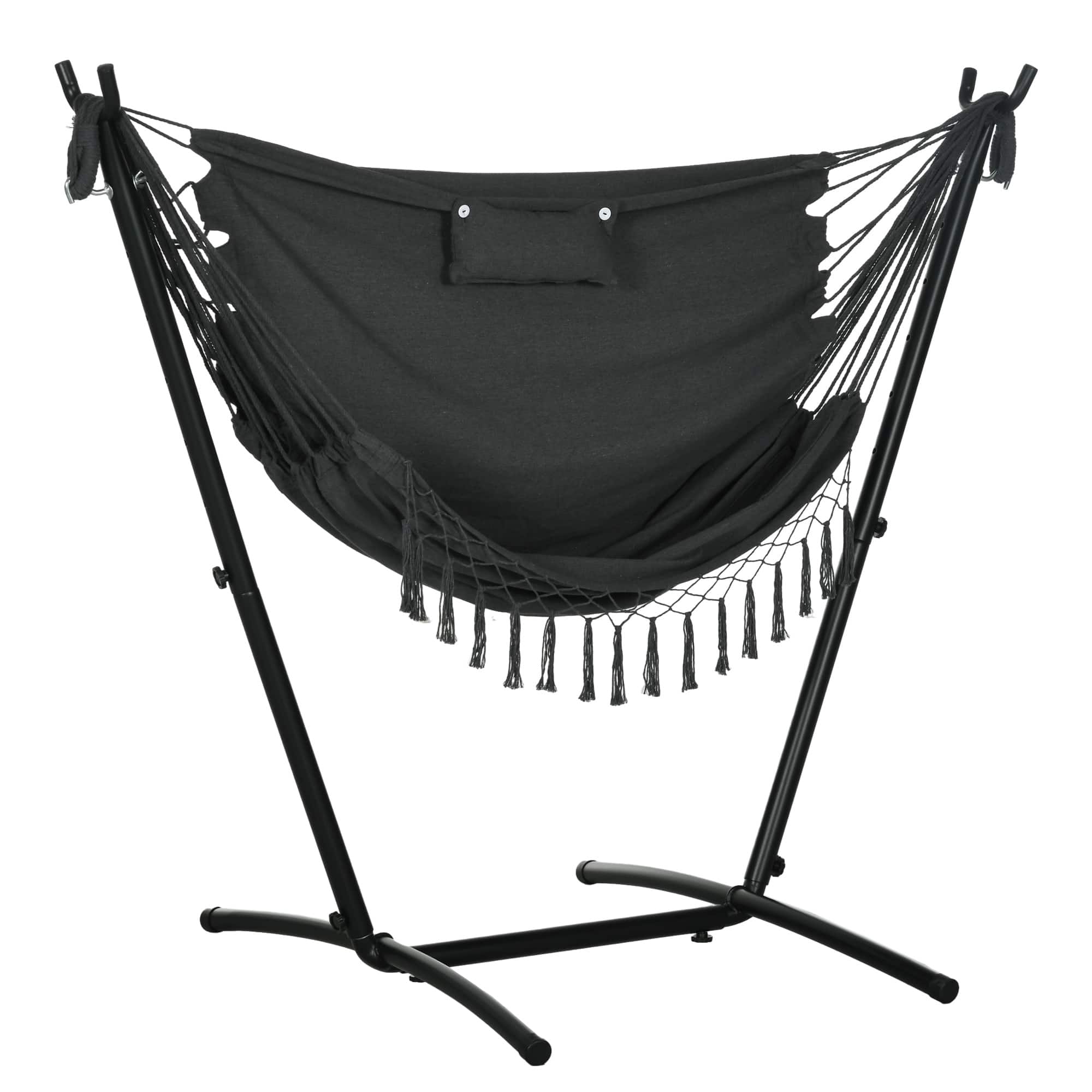 2-Person Hammock with Stand, Cotton Rope & Polyester Pad, Adjustable Steel Frame for Patio, Dark Gray