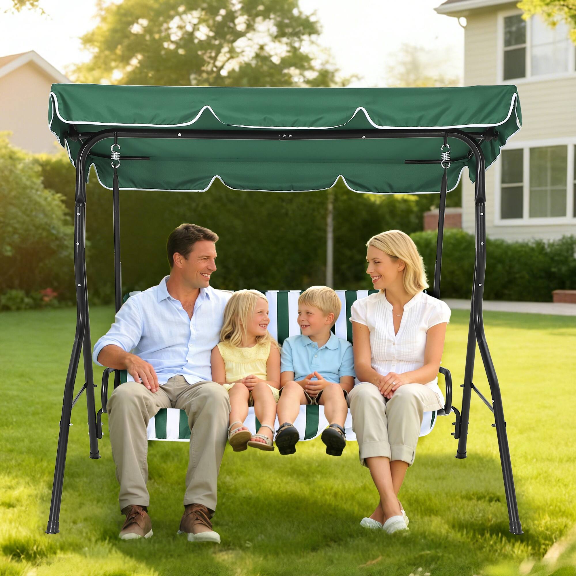 3-Seat Porch Swing, Adjustable Canopy, Breathable Seat, Steel Frame