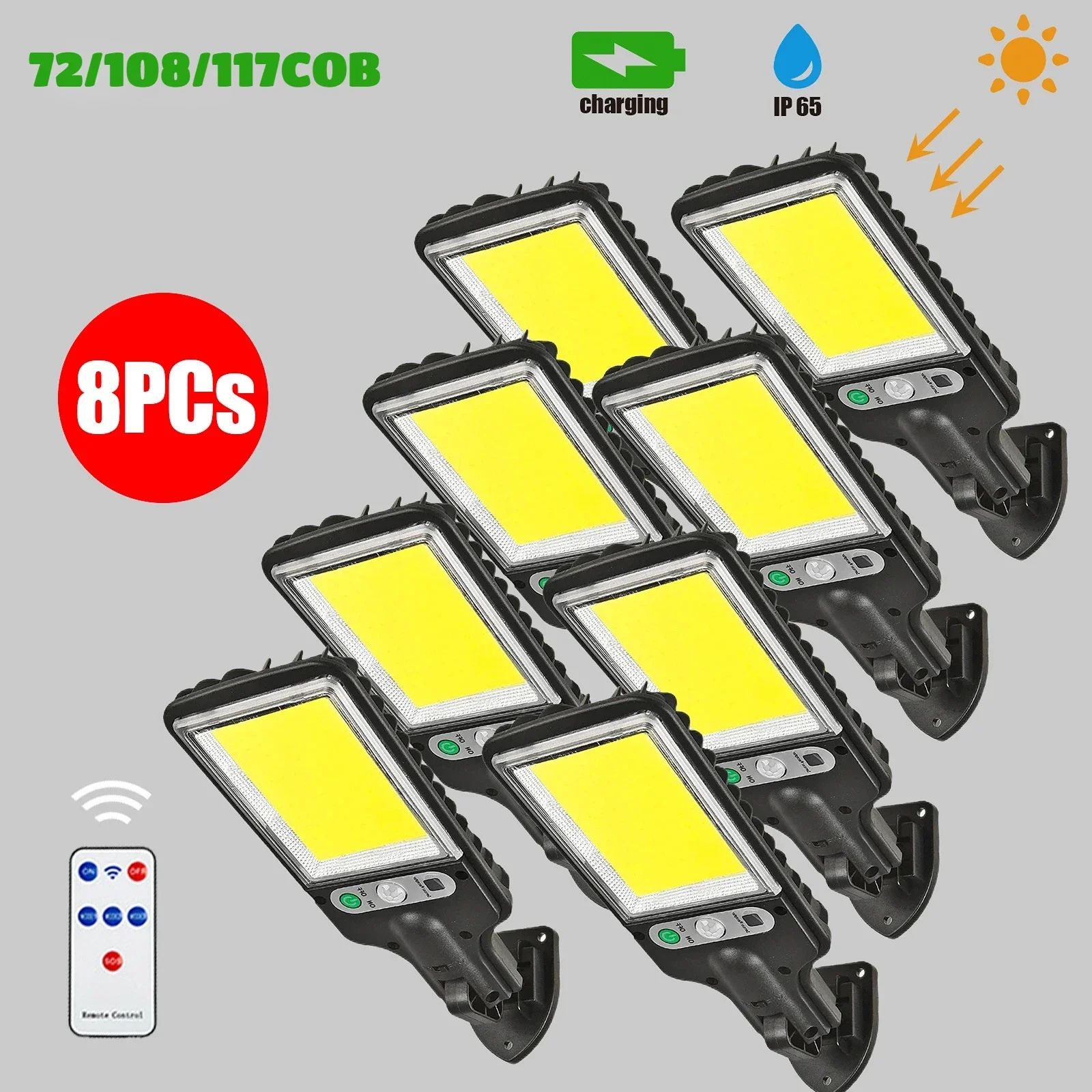 BrightGuard Solar Motion Security Light Outdoor 3 Mode Waterproof Garden Yard LED Lamp 200cob With Rc 2pcs