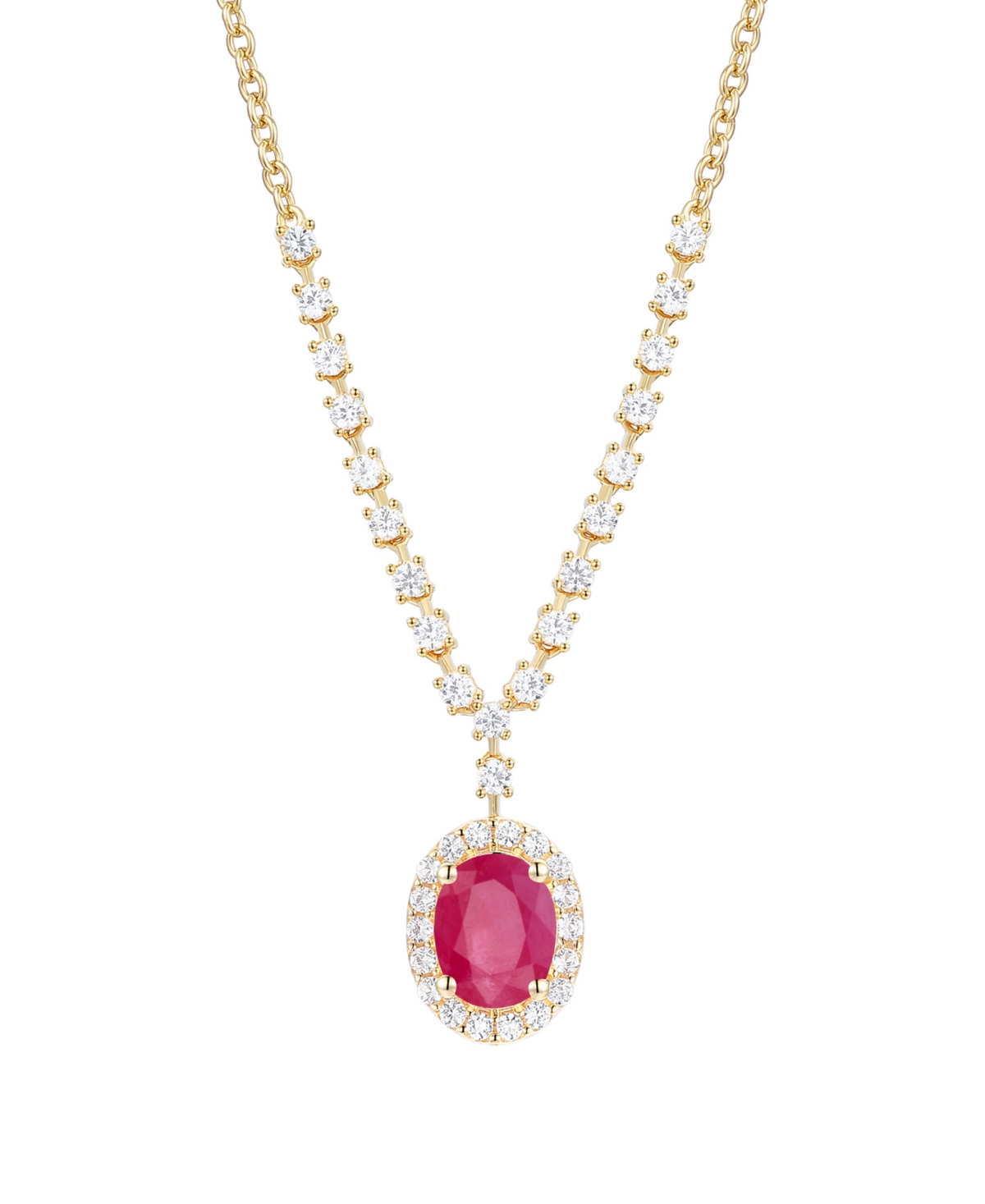 Macy's Sapphire (1-1/2 ct. t.w.) And Diamond (5/8 ct. t.w.) Necklace in 14k White Gold (Also Available Emerald & Ruby) - Ruby