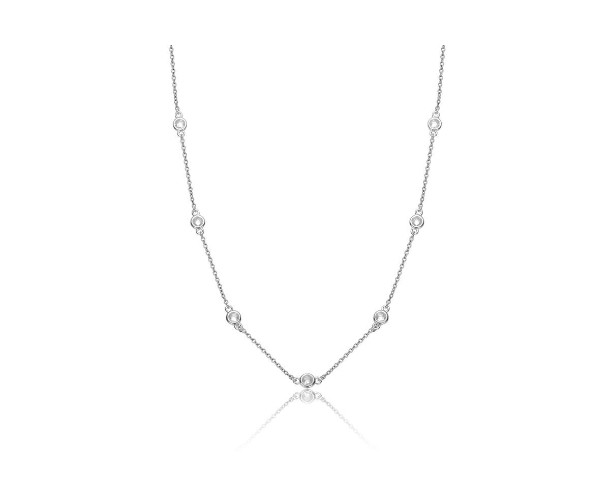 Rachel Glauber Classic Bezel Set Cubic Zirconia Chain Station Necklace - White