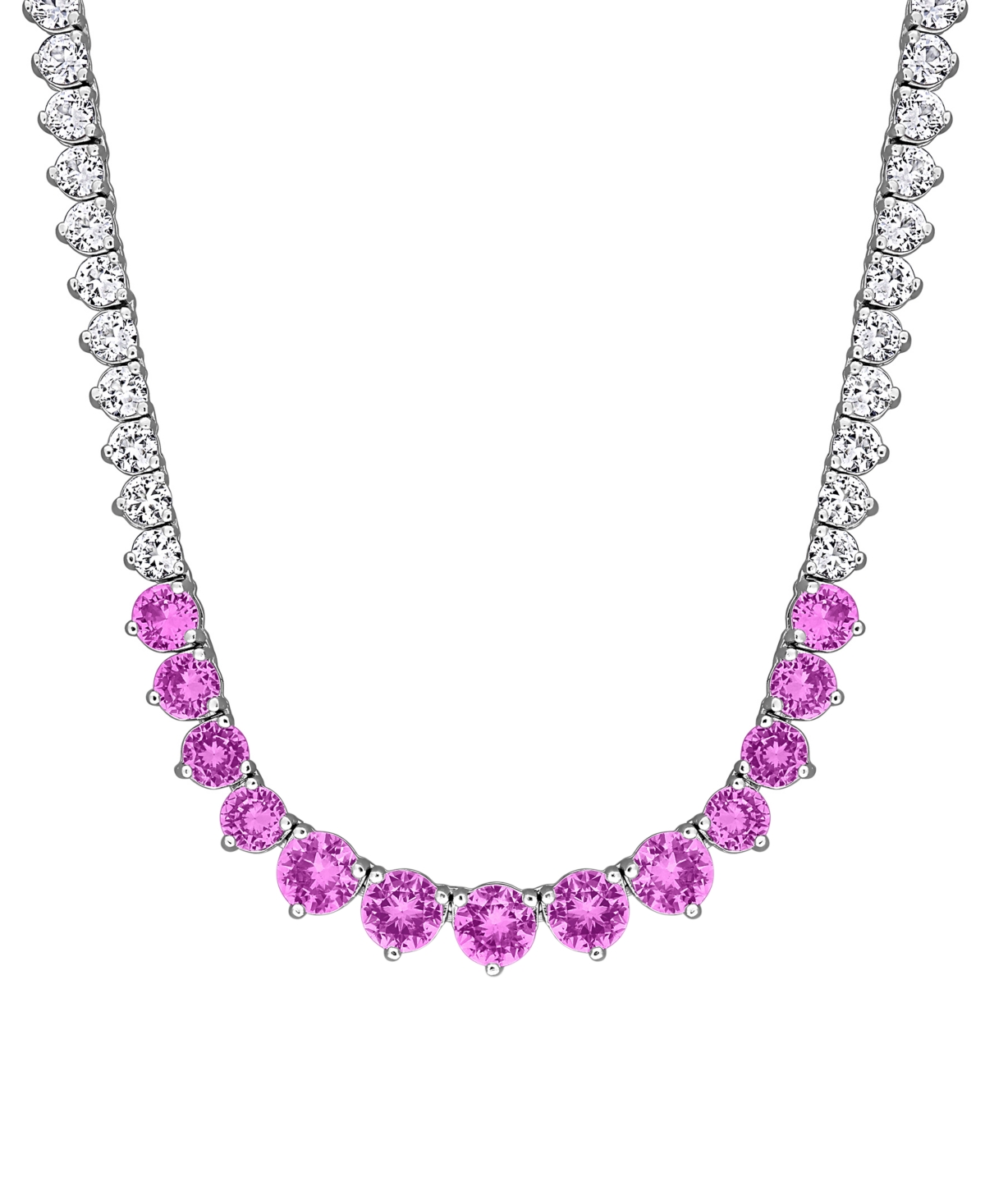 Macy's Sapphire (5-1/3 ct. t.w.) and White Sapphire (16 ct. t.w.) Tennis Necklace in Sterling Silver - Pink