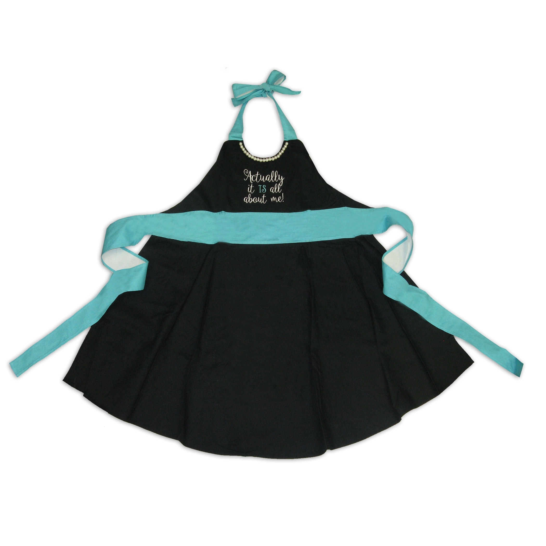 "It's All About Me" Black Cotton Pearl Trim Kitchen Apron - 53"L x 34"W