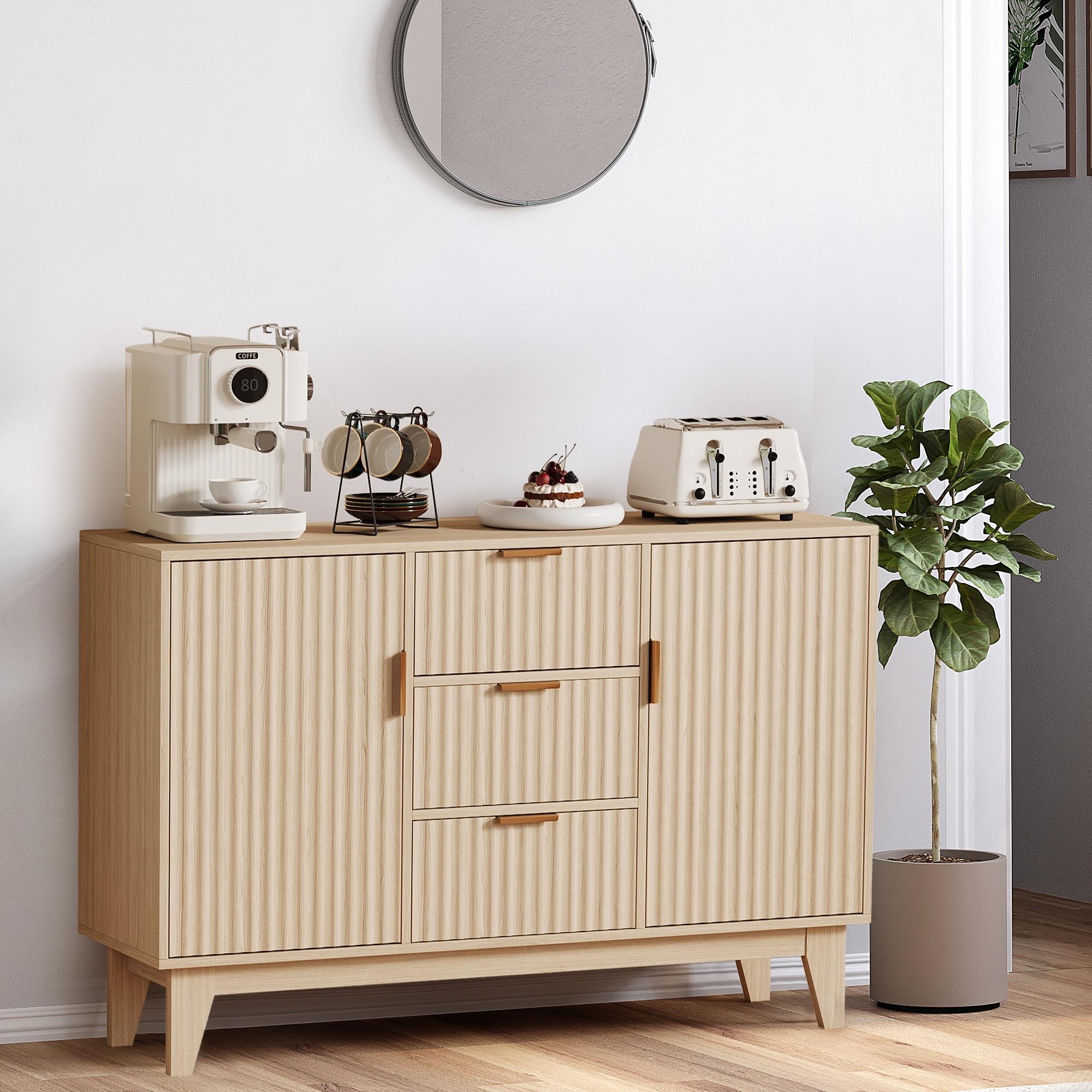 47.2 Inch Fluted Buffet Storage Cabinet with 3 Drawers, Modern Mid-Century Sideboard TV Stand