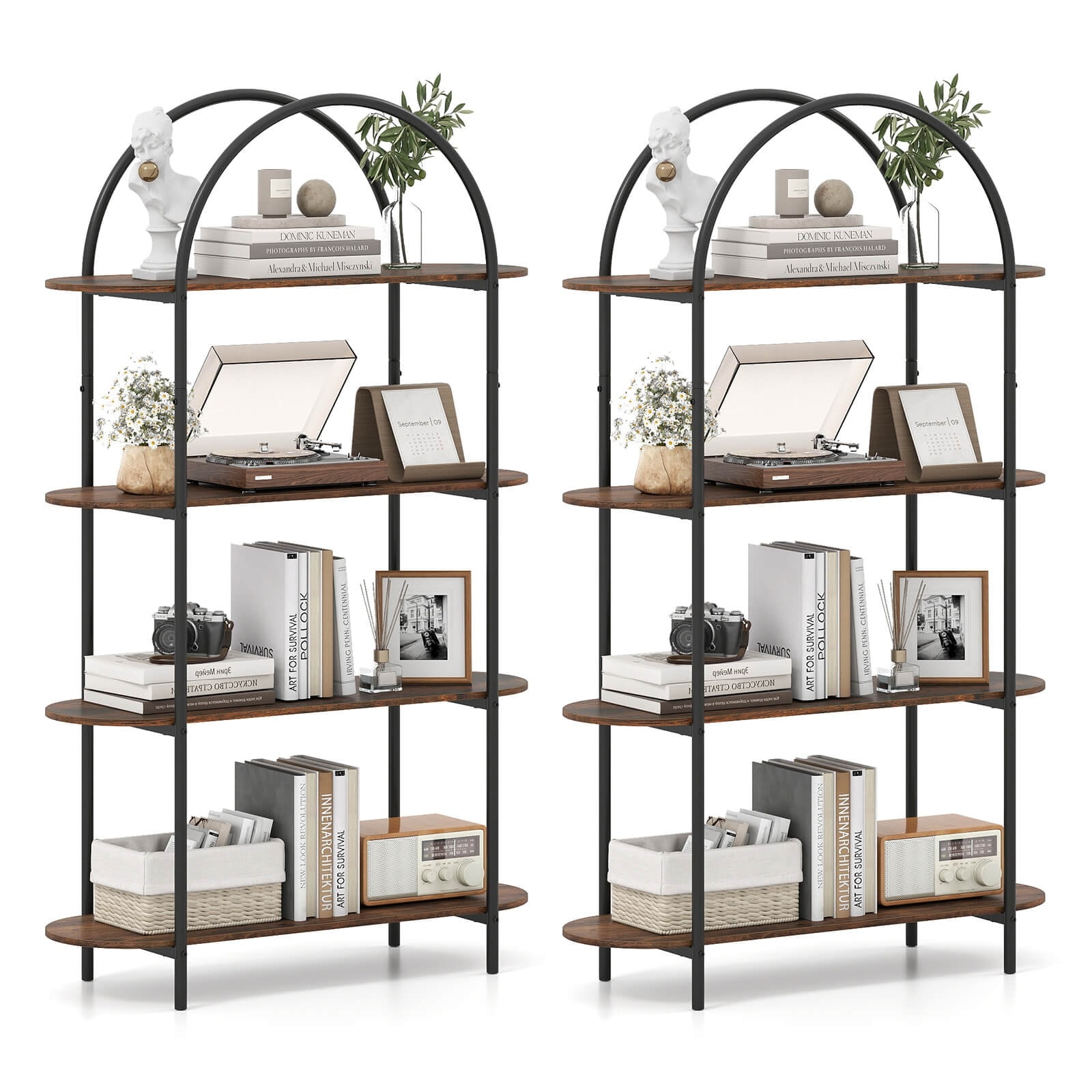 Costway 1/2 PCS Arched Bookshelf, 4-Tier Open Bookcase with Sturdy - See Details