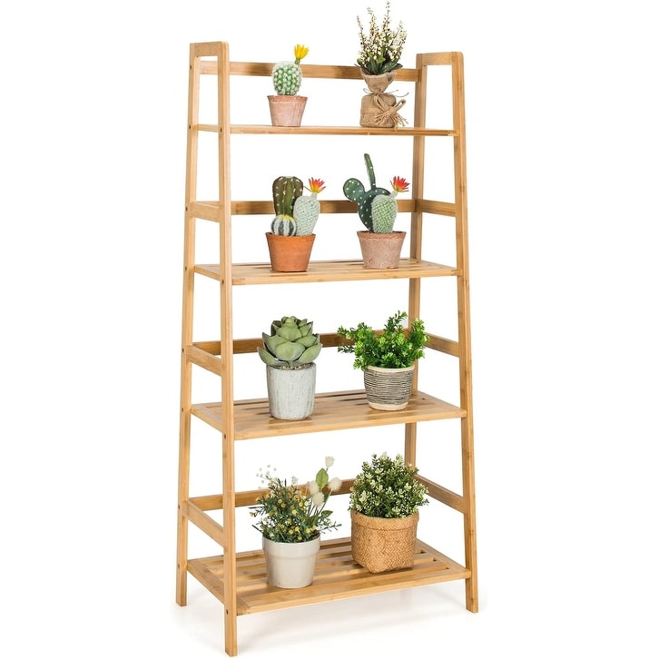4 Tier Bamboo Ladder Bookshelf, 48'' Freestanding Bookcase for Living Room, Office, Bedroom