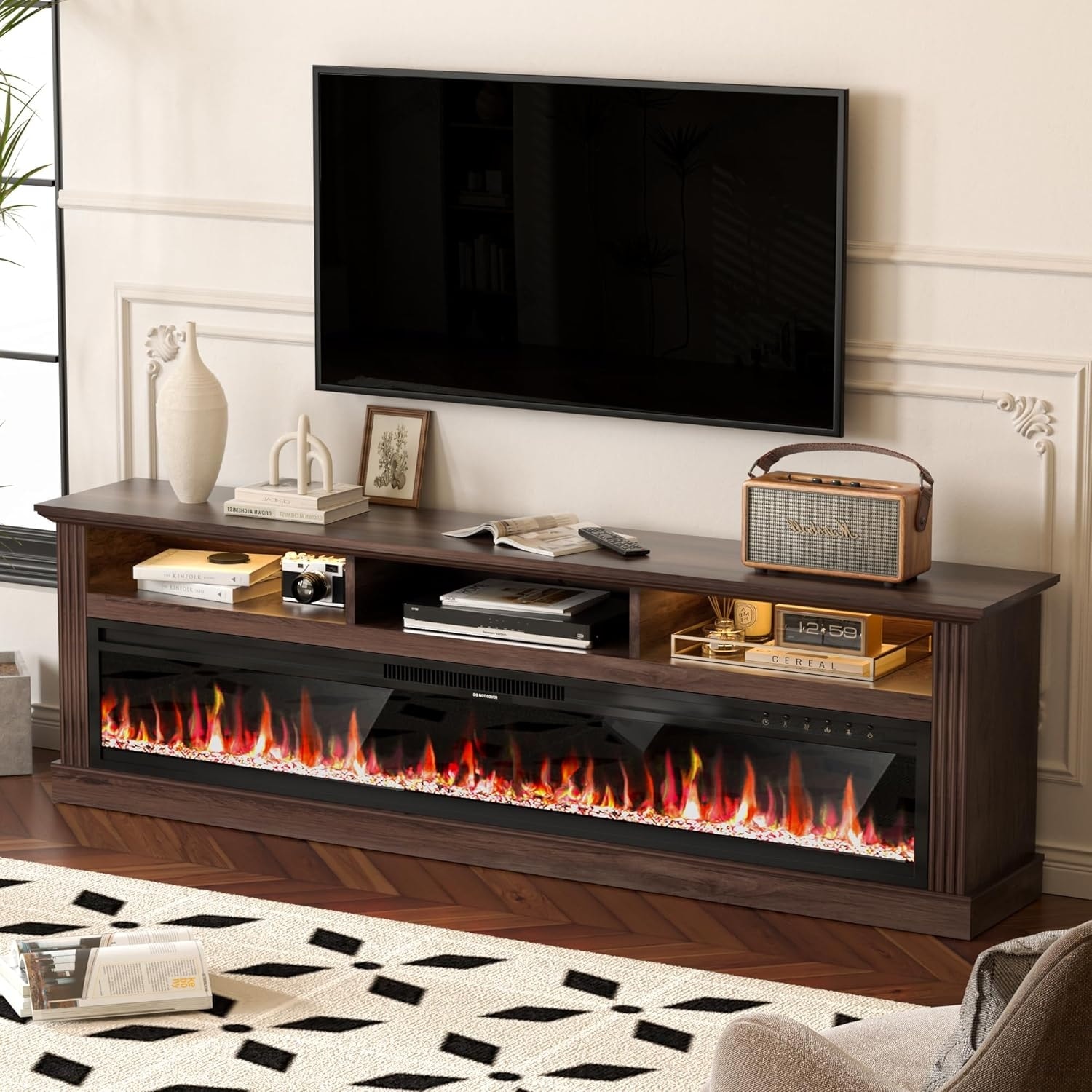 Barrow Creek Fireplace Console with Glass Doors for TVs up to 60", Espresso
