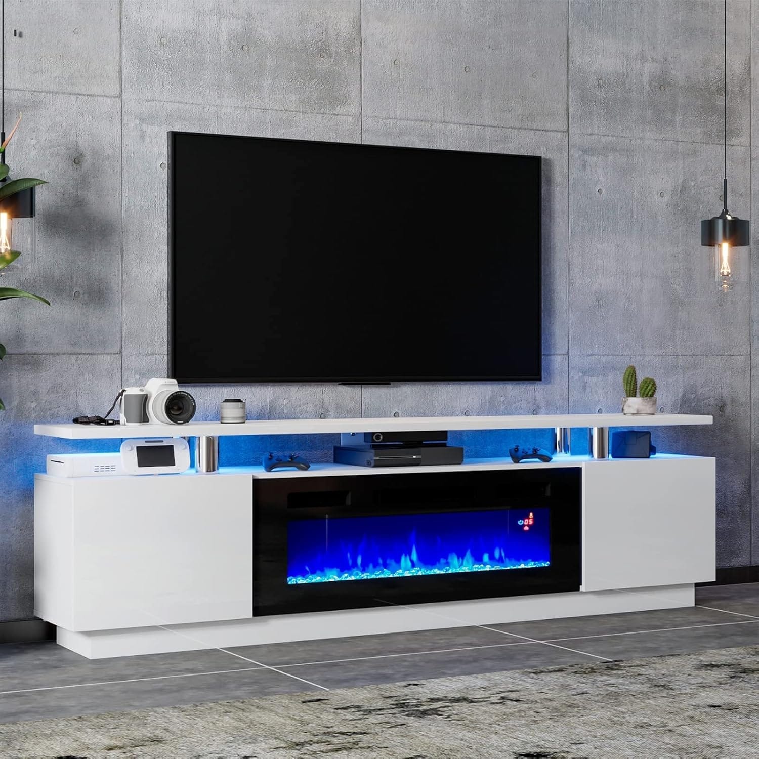 Modern 36" Electric Fireplace TV Stand with LED Lights, Media Console for TVs Up to 80", White