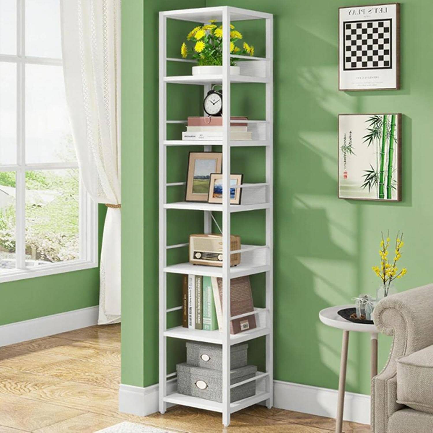 Industrial White 7-Tier L-Shaped Corner Shelf Book Storage Cabinet - 14.17" L × 9.44" W × 78.74" H