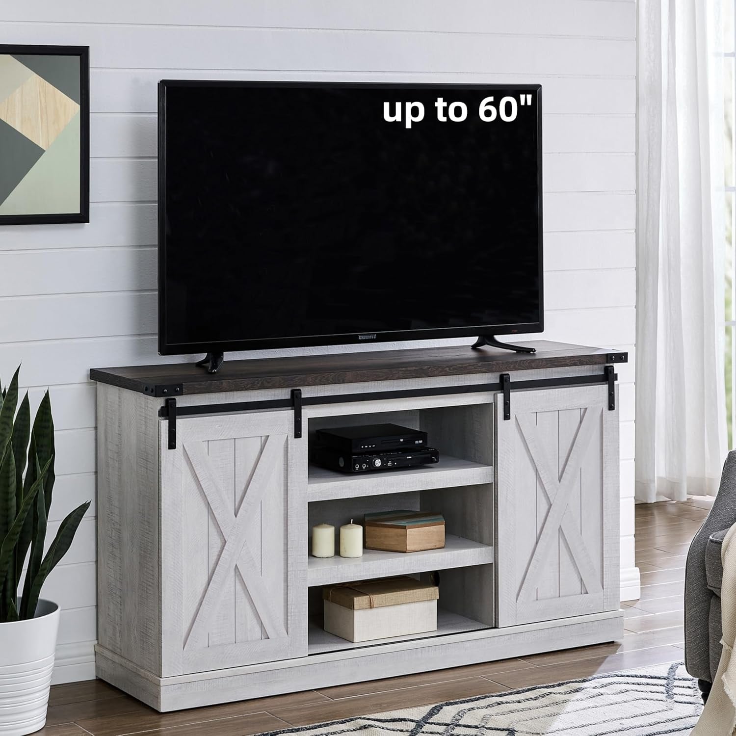 Rustic TV Stand for 60 Inch, Wood Media Console with Barn Door & Storage, Ash Gray