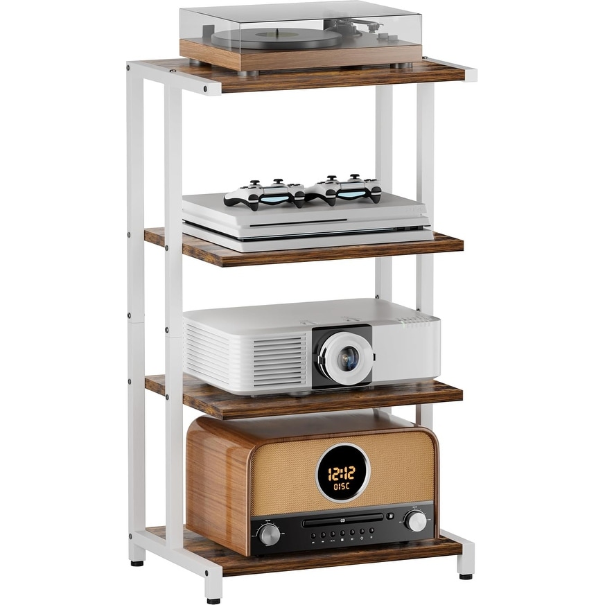 4-Tier Wooden Media Storage Stand for Living Room, Gaming Room, Music Studio