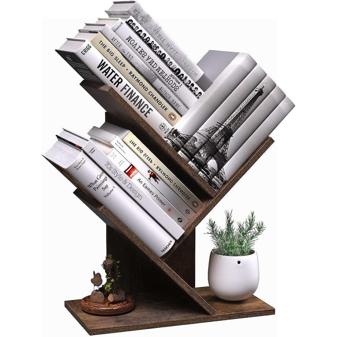 3-Tier Retro Tree Bookshelf, Narrow Wooden Organizer for Books/Magazines in Rustic Brown - 6x15