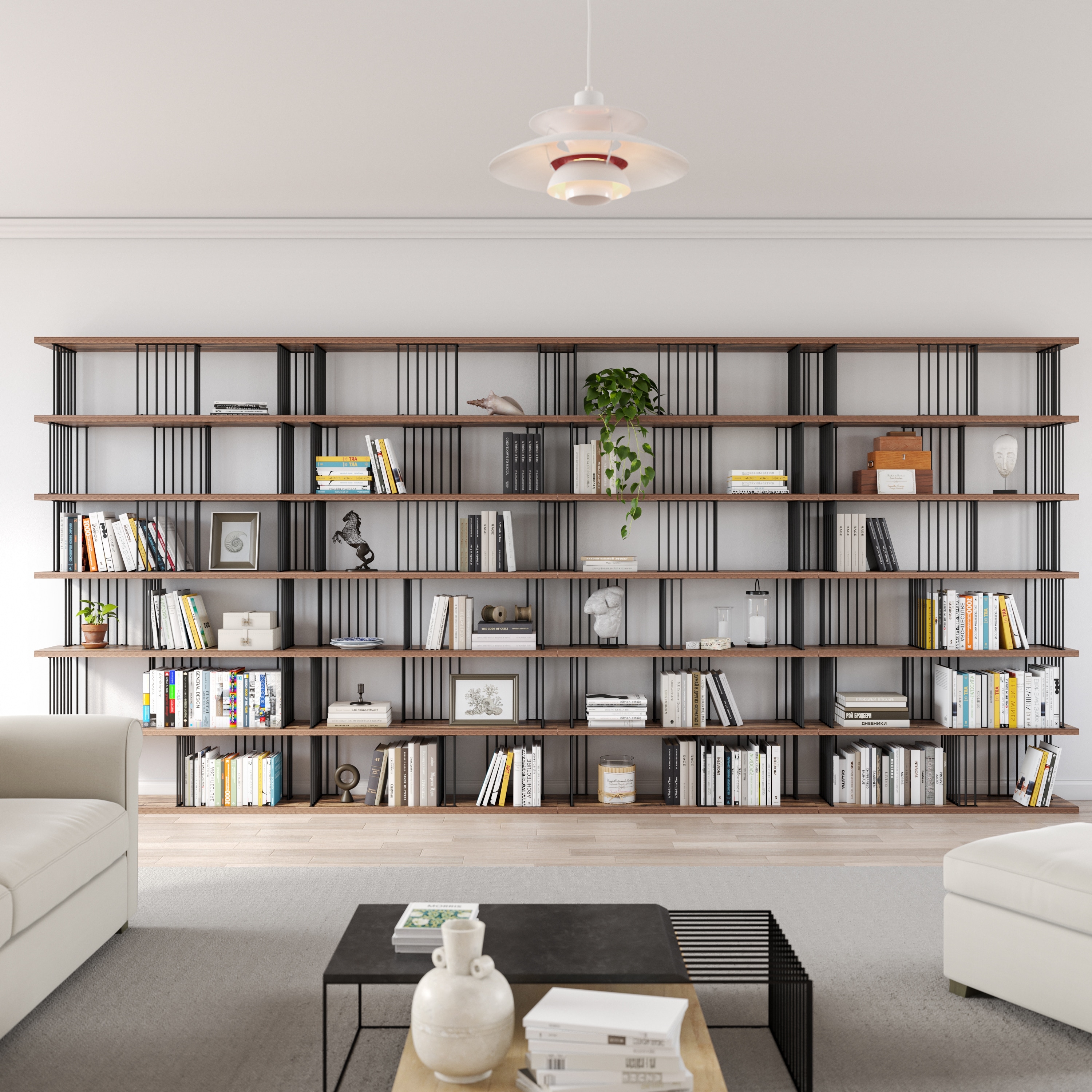189'' Antique Walnut Display and Storage Oraanizer Room Divider Bookshelves - 189'' x 86.2'' x 11.8''