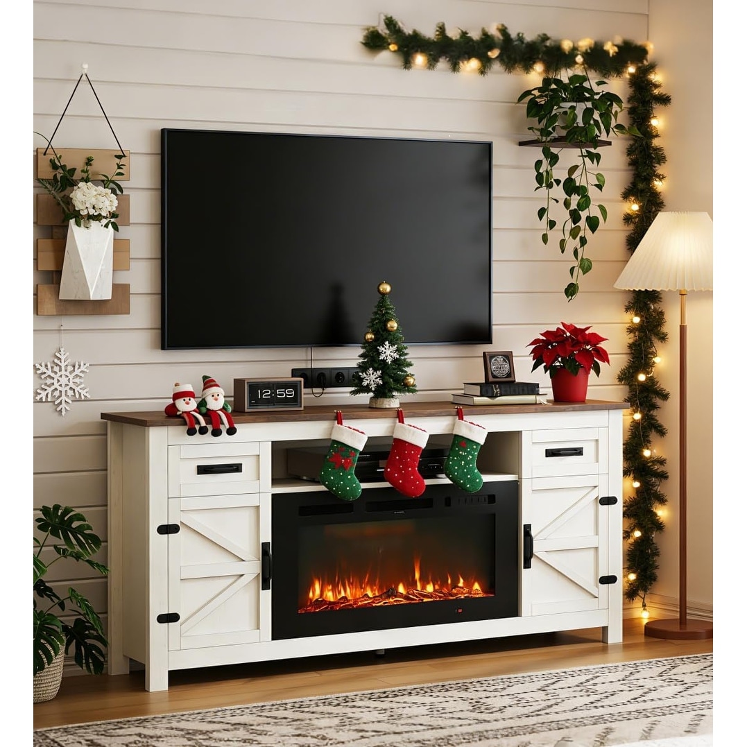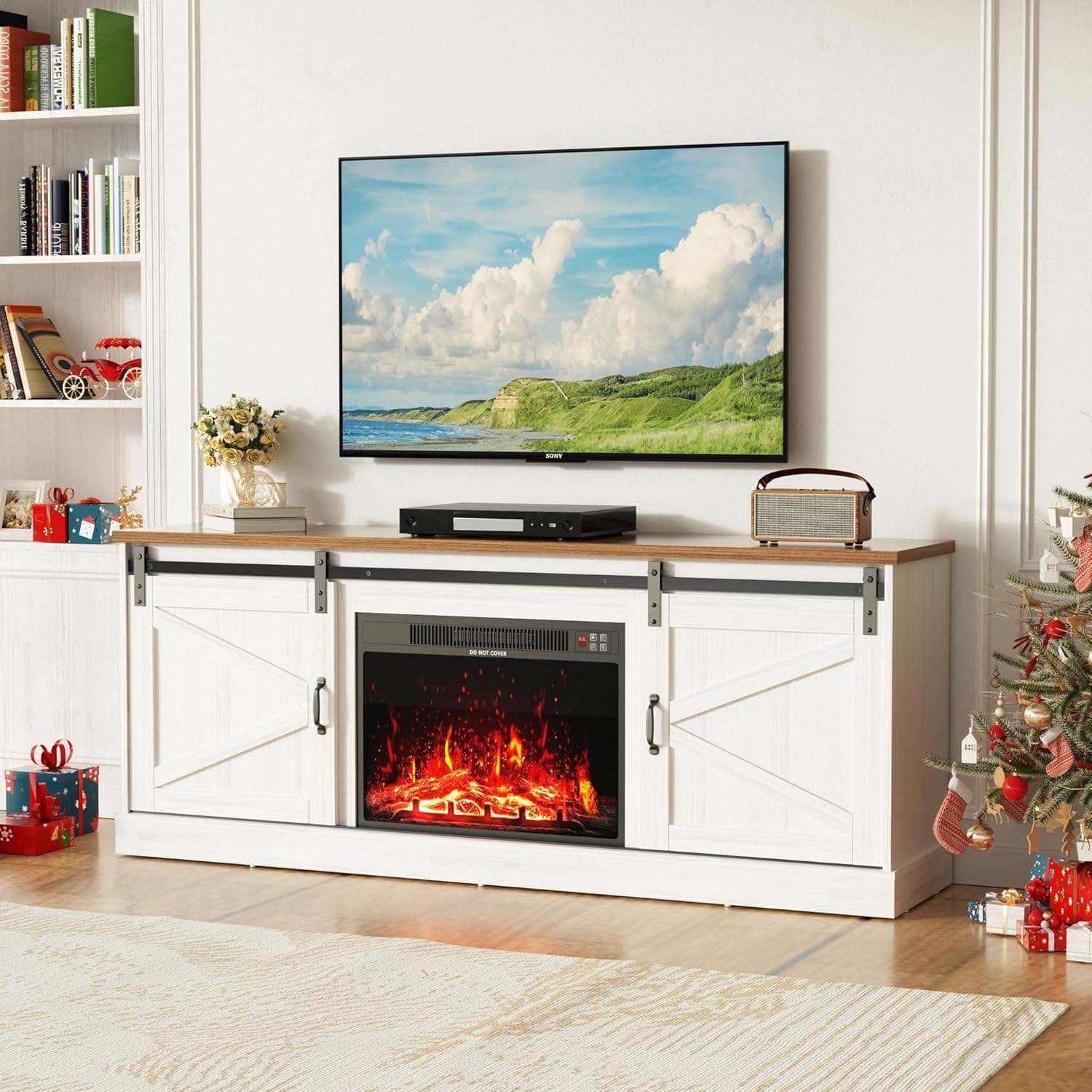 Farmhouse 70" Fireplace TV Stand with Barn Door, Storage Cabinets