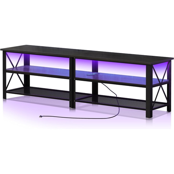 Black 71" Metal TV Stand with LED Lights & Outlets for 50-80" TVs, 3-Tier Entertainment Center for Living Room or Bedroom