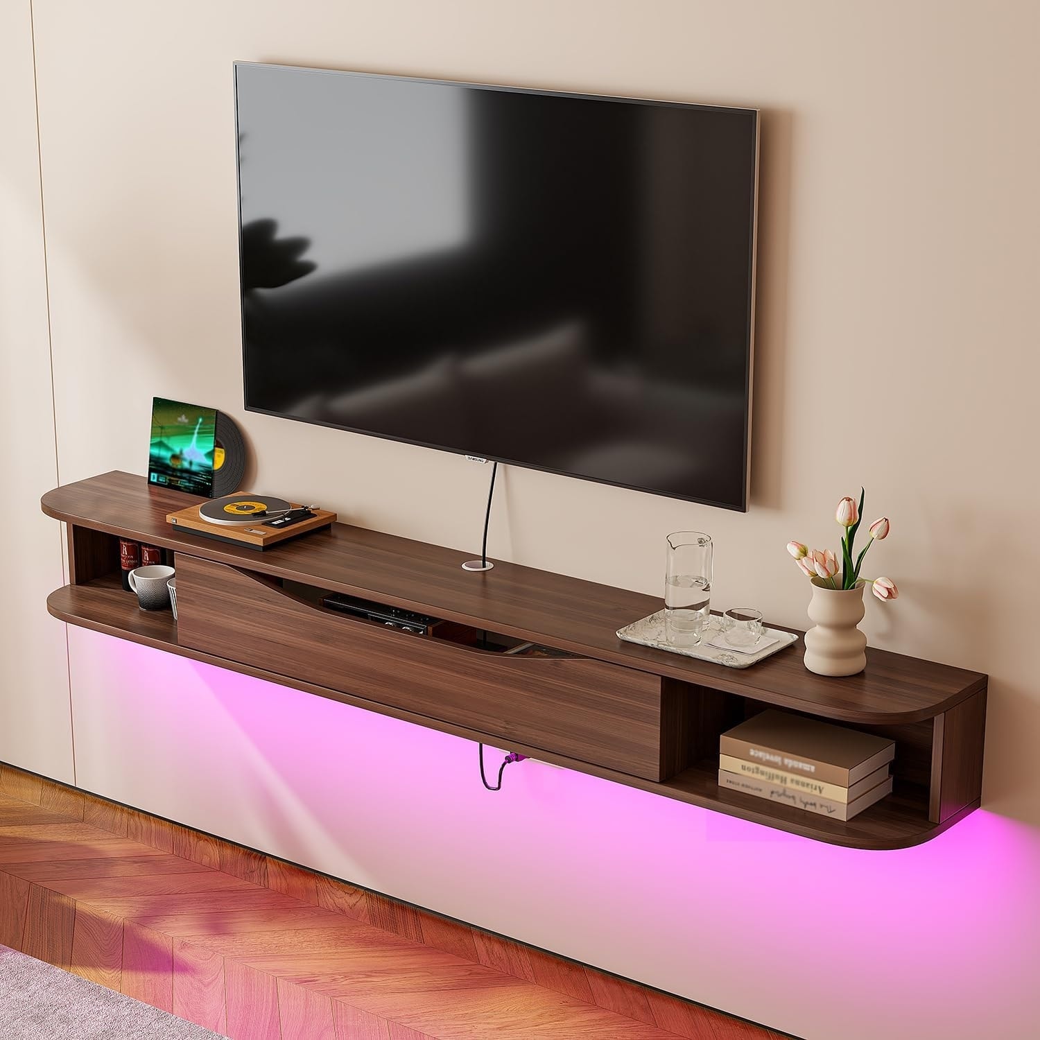 Floating LED TV Stand Wall Mounted with Storage for 55-65 Inch TVs