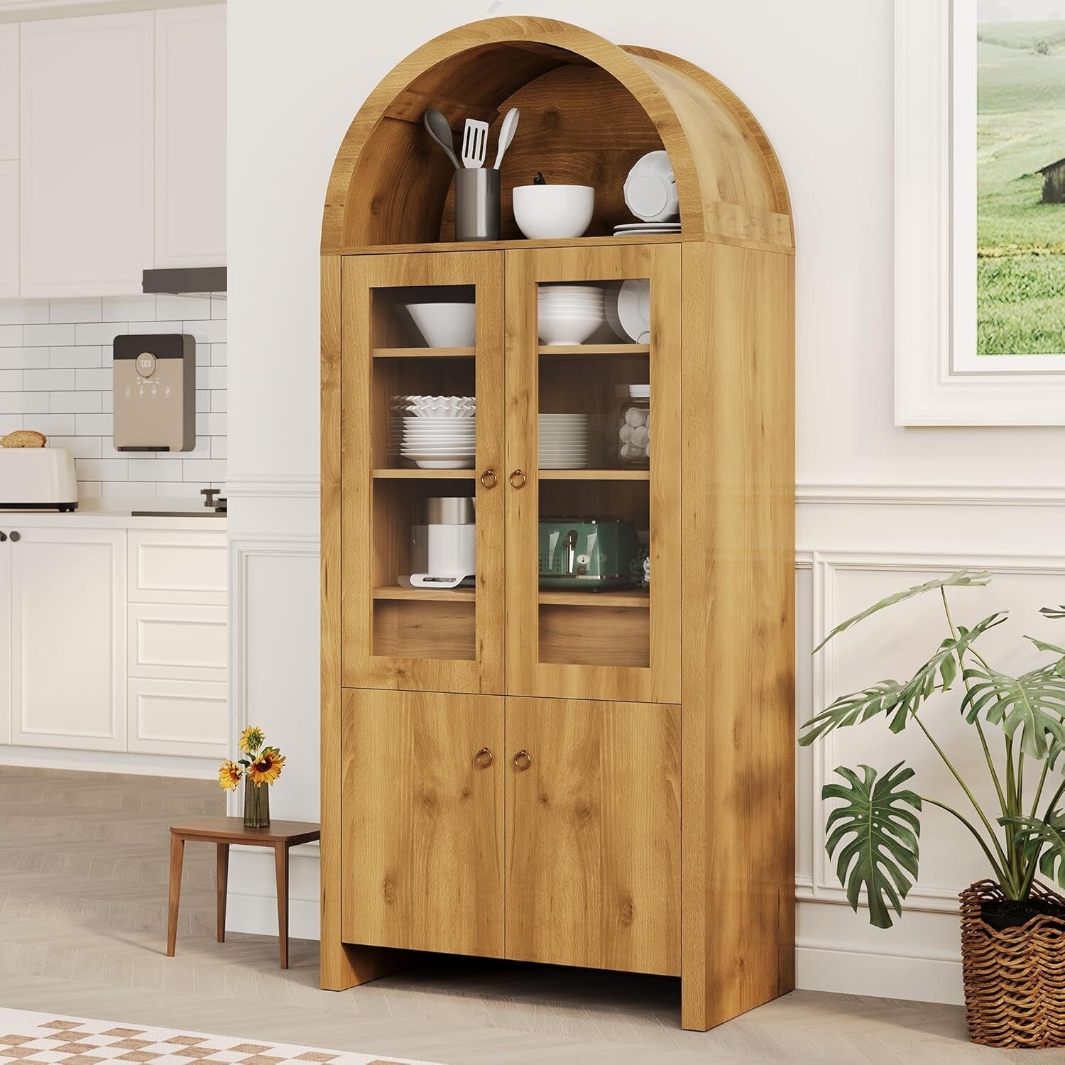 71" Tall Arched Kitchen Pantry Cabinet