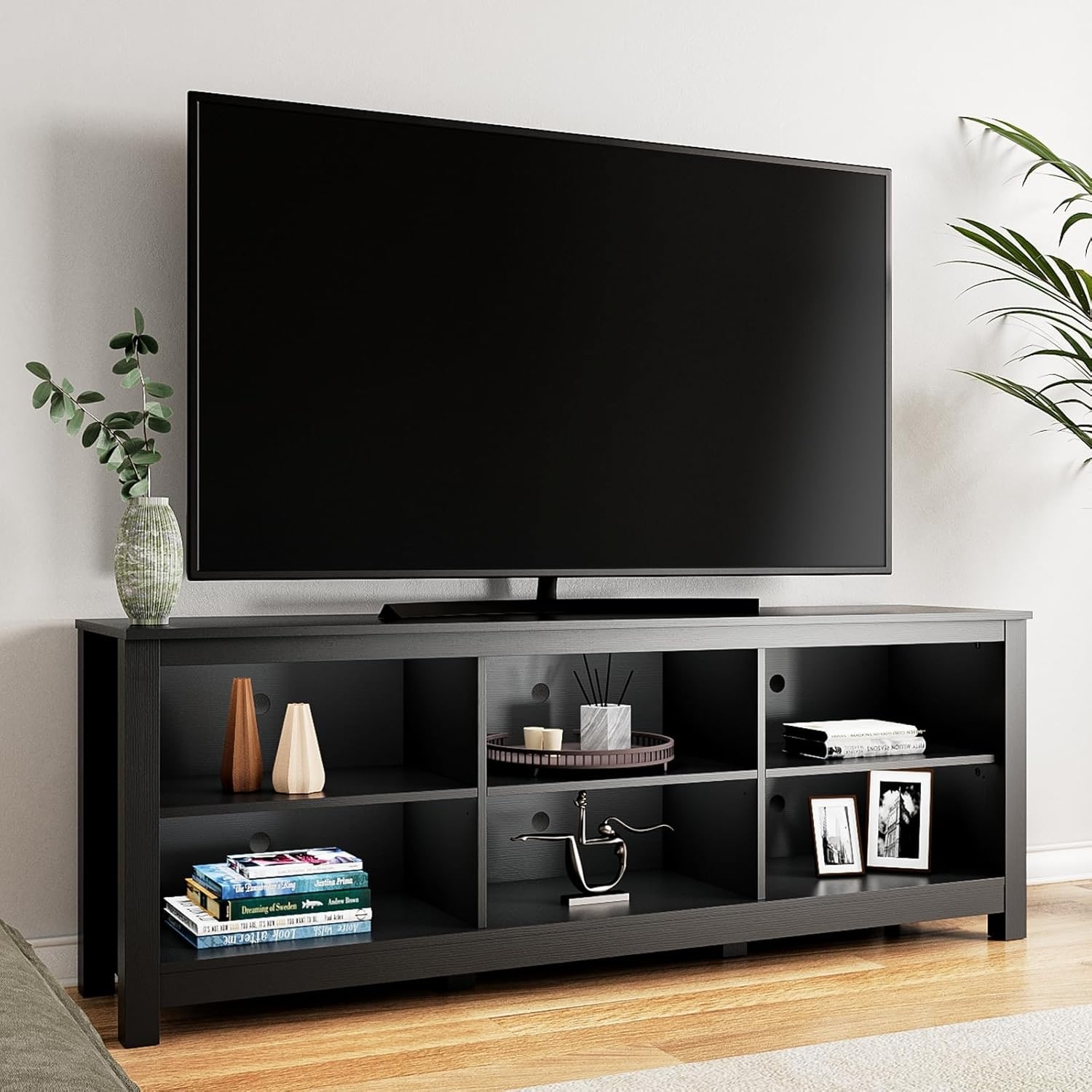 TV Stand for TVs up to 70 Inch, Entertainment Center with 6 Storage Cubbies, Console Table for Living Room Bedroom