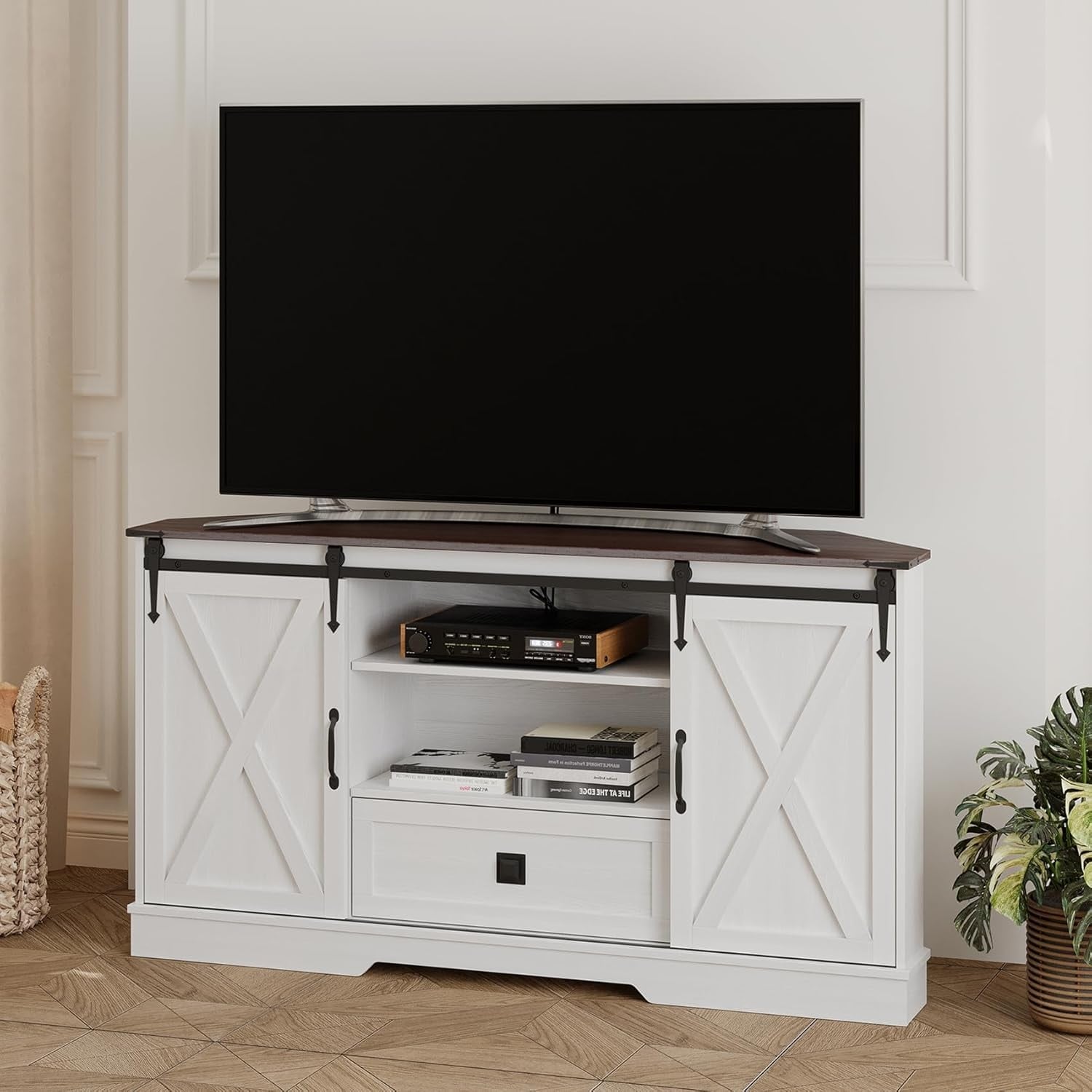 Farmhouse TV Stand for 32-65" with Storage, Wood Entertainment Center for Living Room or Bedroom