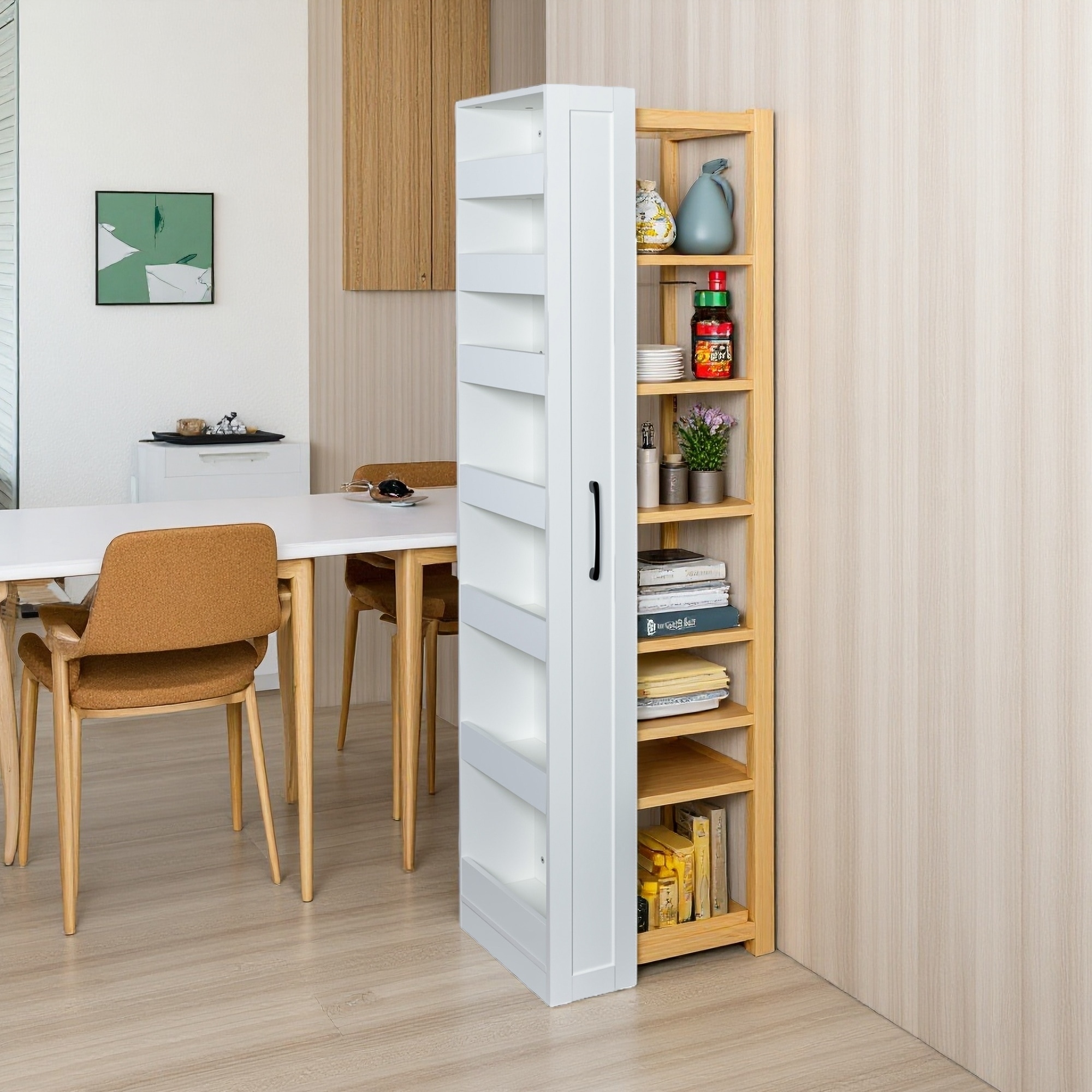 70.75"H 7-Tier Pull-Out Wooden Storage Shelf, Slim Rack for Kitchen & Living Room