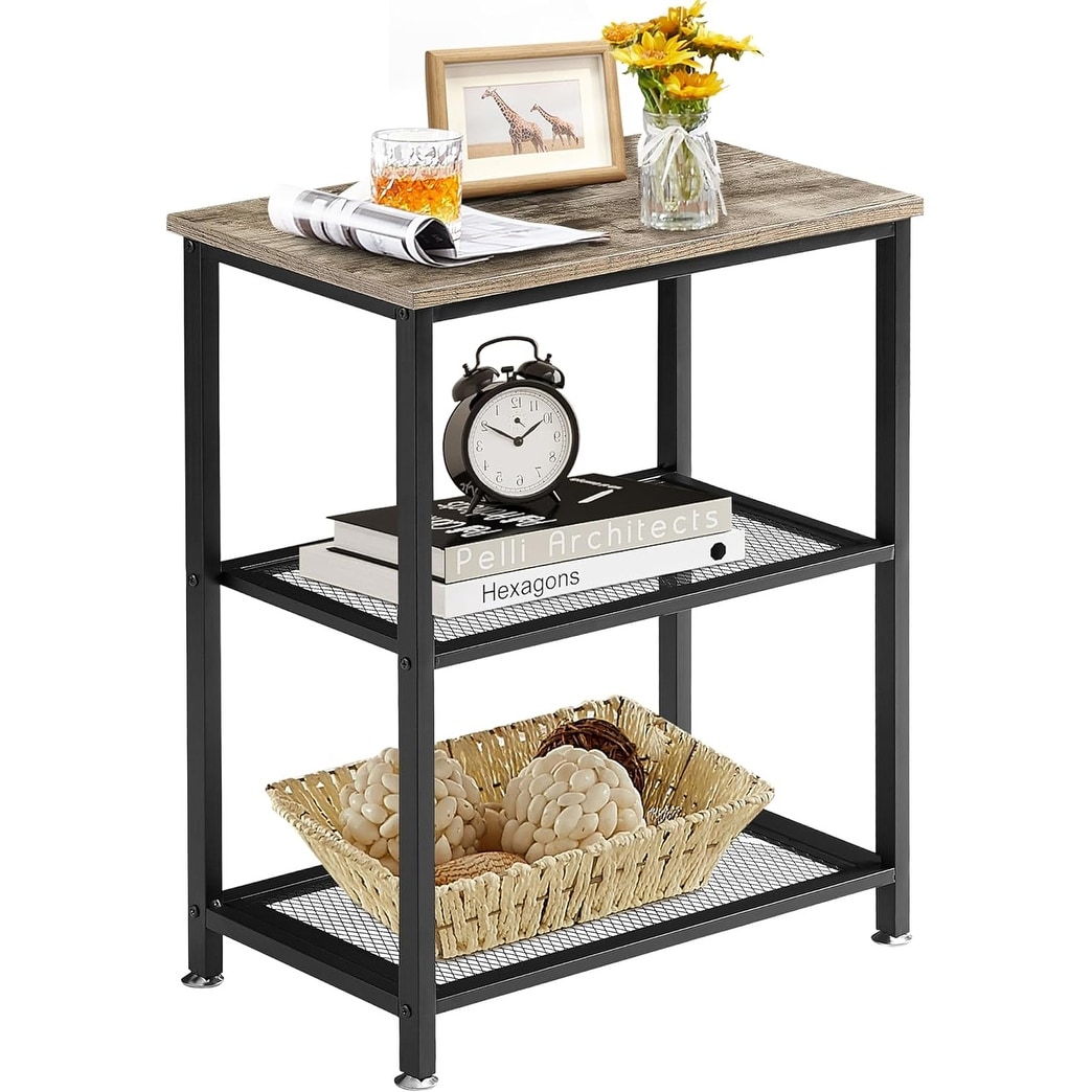 End Side Table, 30" Height with 3-Tier Storage, Easy Assembly, Industrial Style - Grey