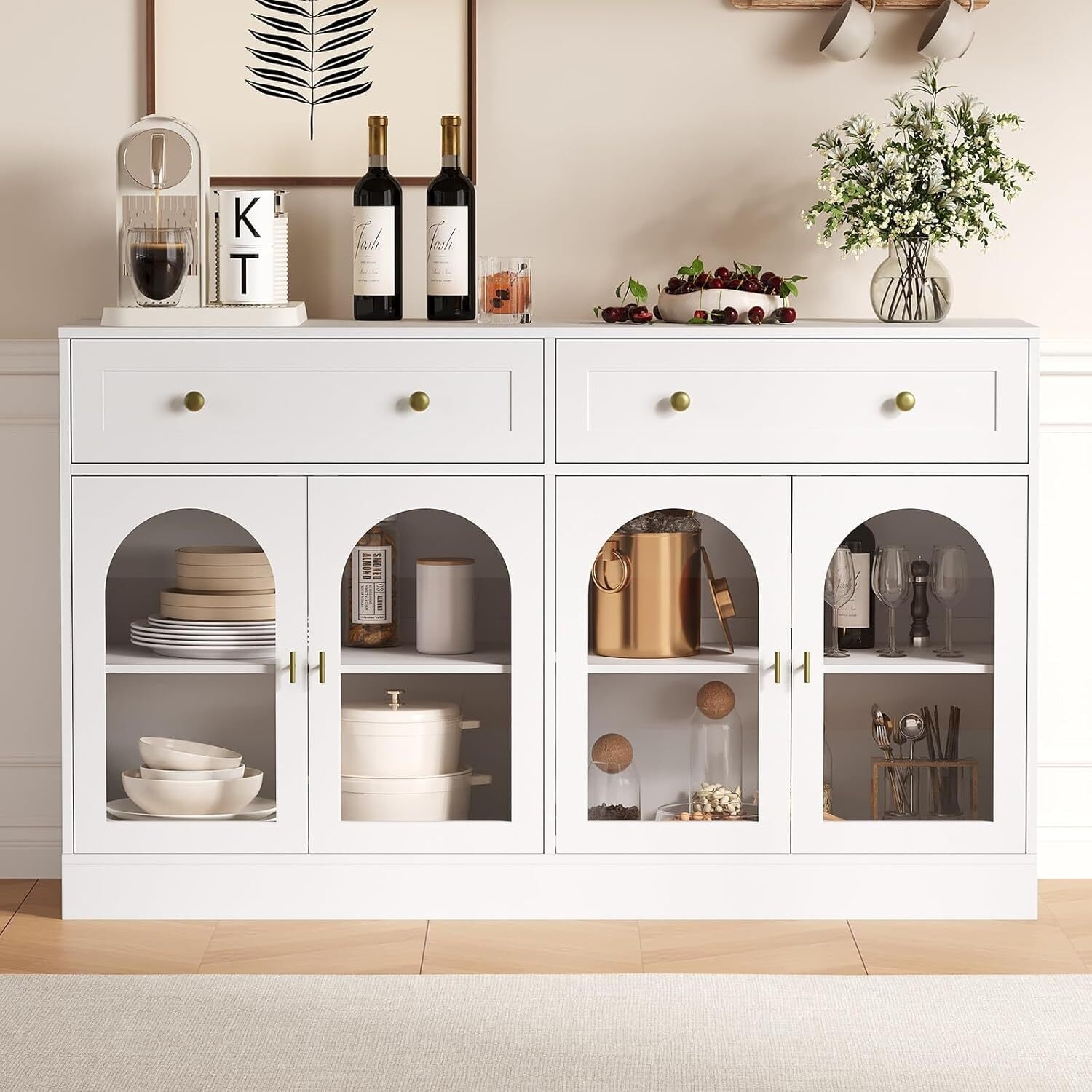 Farmhouse 55 Inch Wide Sideboard Buffet Cabinet with 4 Acrylic Doors and 2 Drawers