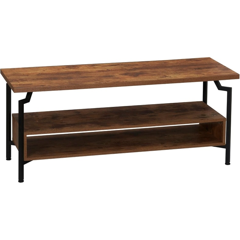 TV Stand with Rectangular Storage, Rustic Wood Grain & Black Metal