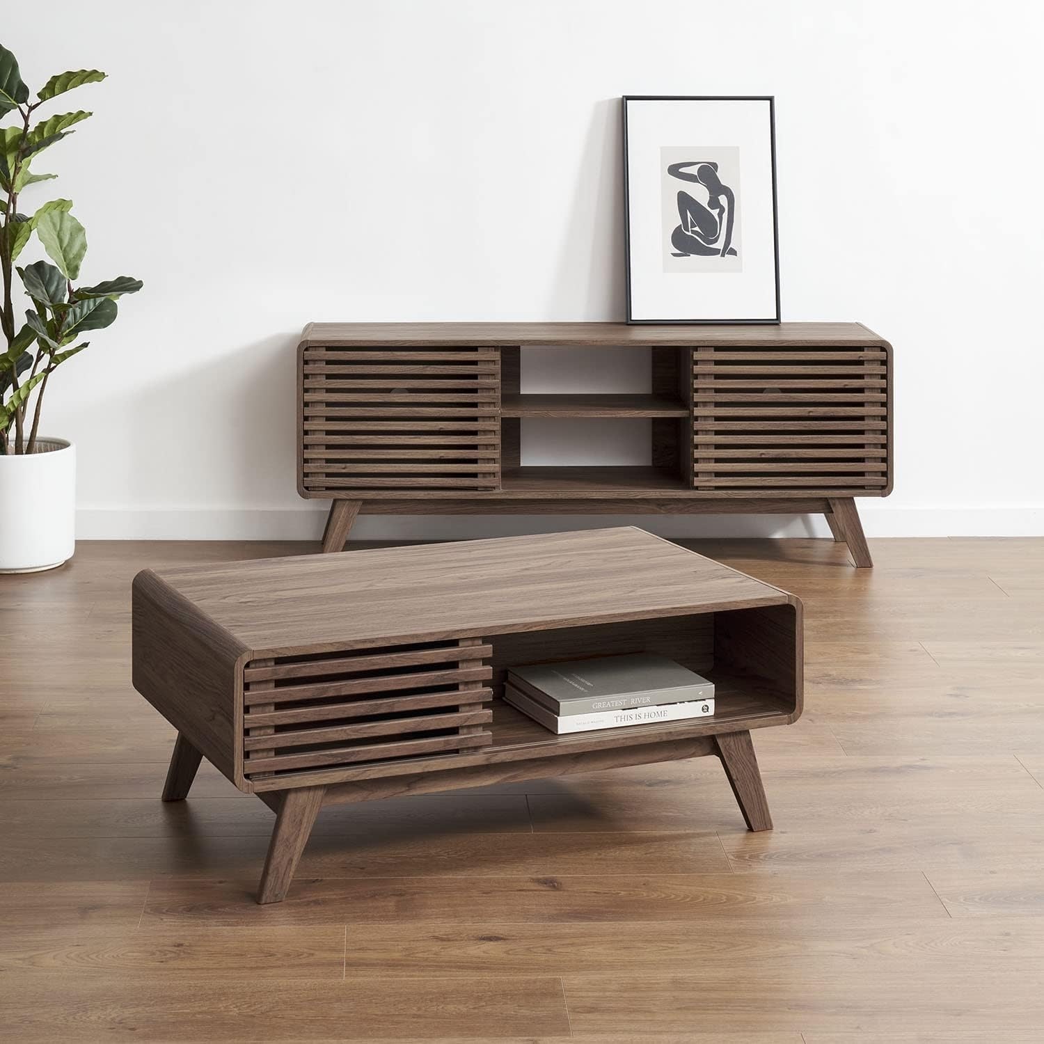 59" Tall TV Stand & Coffee Table Set with Storage (Walnut)