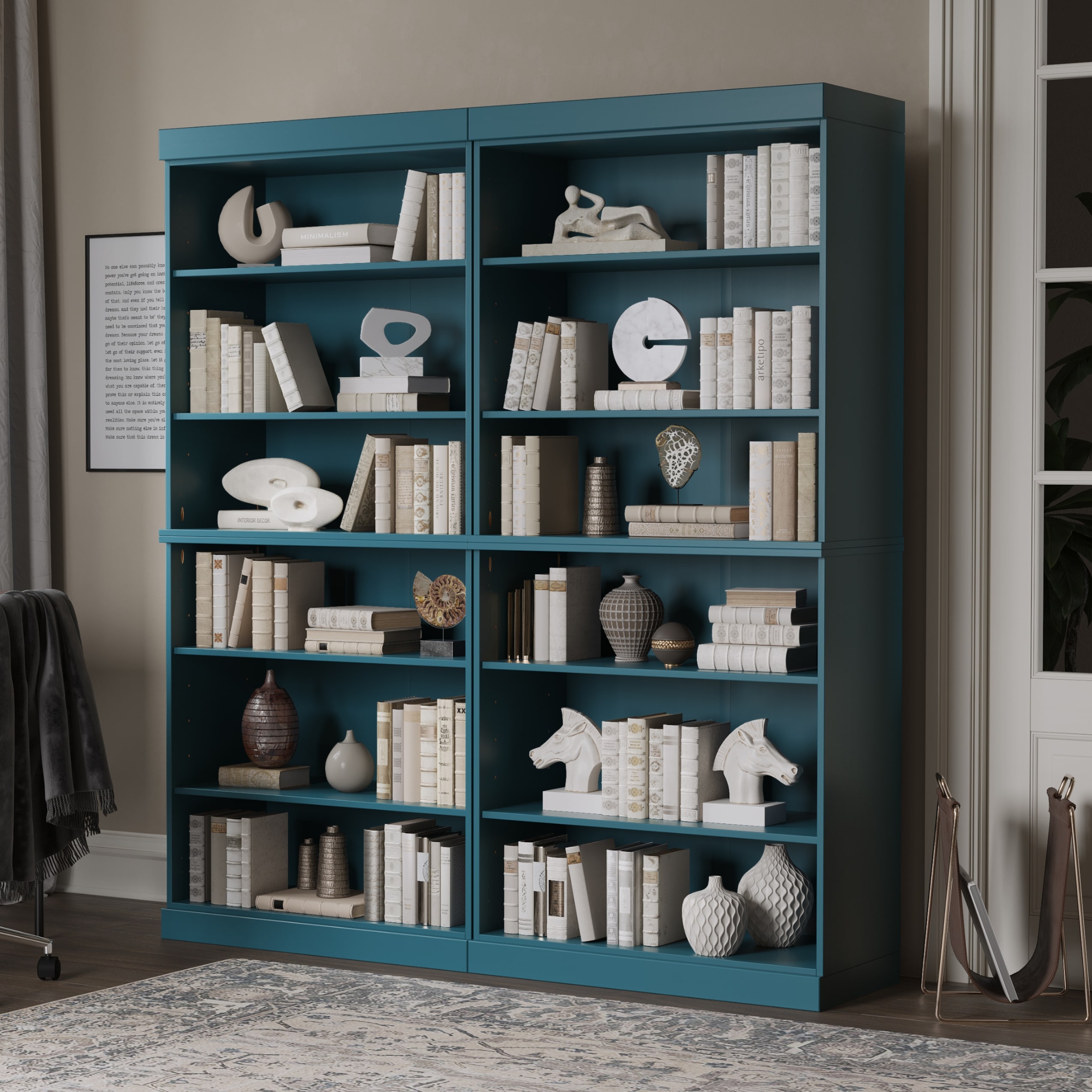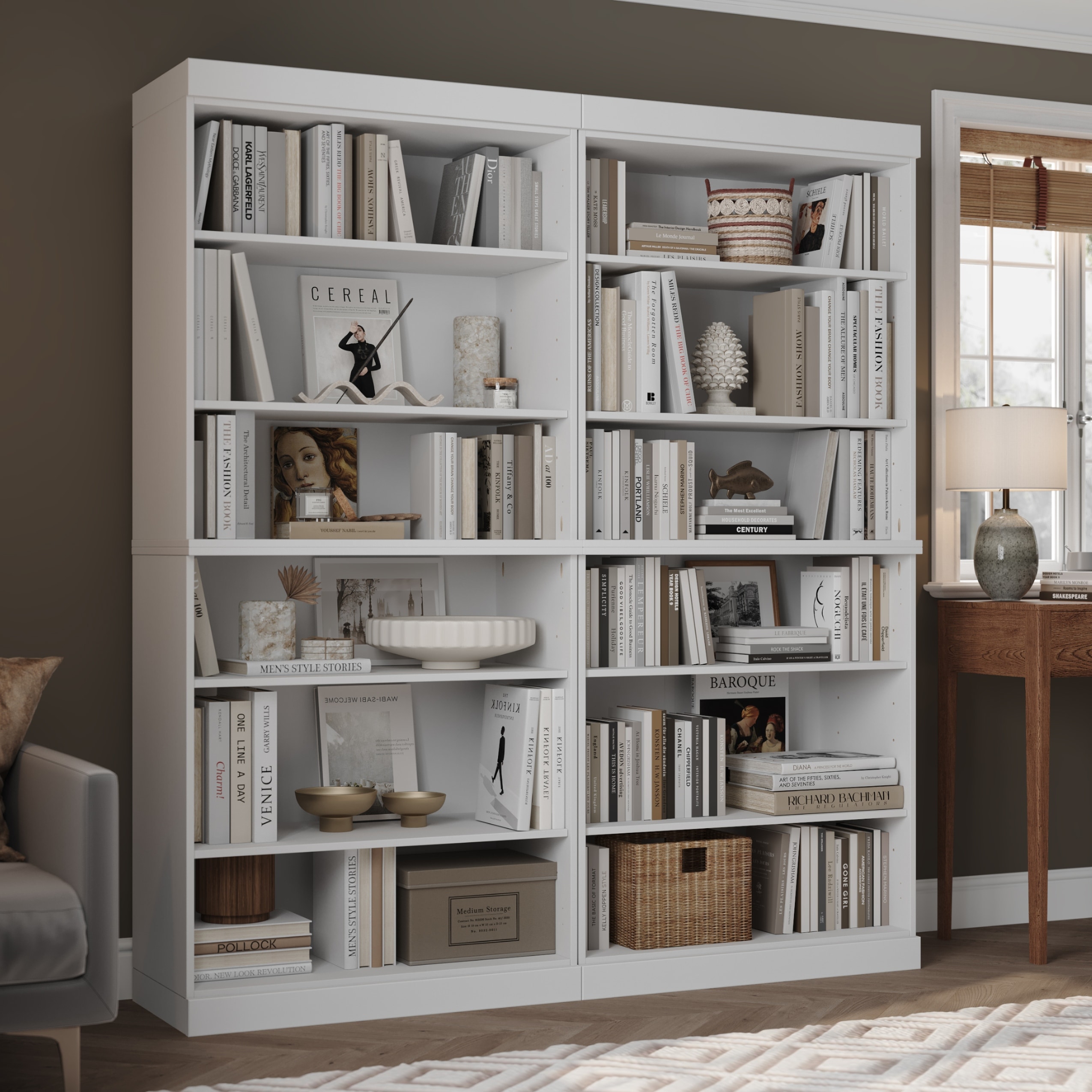 74" Tall Double Face Shelving Unit - 10 Shelves, Adjustable Storage for Books & Decor