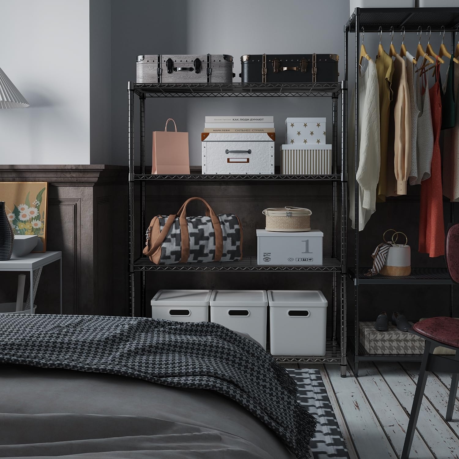 1400 LBS Garage Black Shelving Wide Storage Shelves 4 Tier Adjustable Heavy Duty Metal Wire Rack Standing Shelf Unit