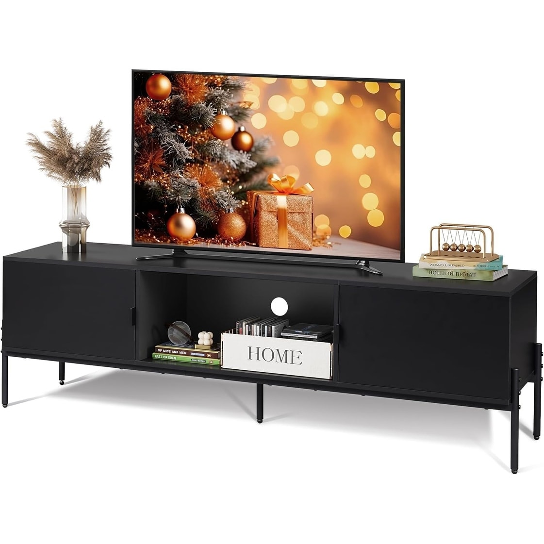 TV Stand for 65" with Storage & Open Shelf, Modern Design, Metal Legs, Black