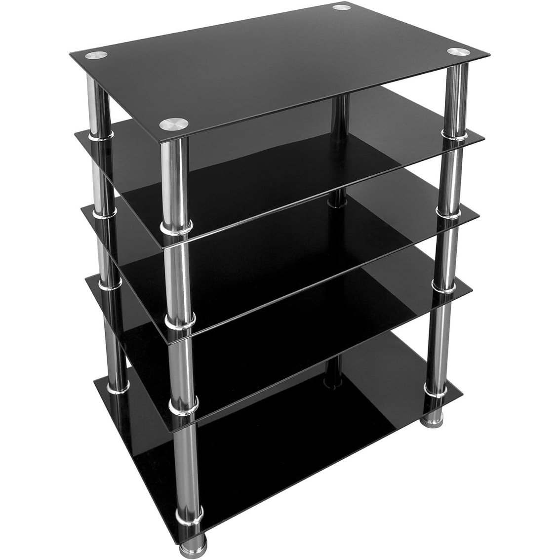 AV Component Media Stand with 5 Shelves, 220 Lbs Capacity, Black Shelves Chrome Legs