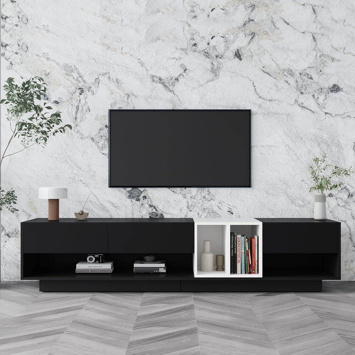 TV Stand for 80" Screens, 2-Tone Media Console with Storage Drawers and Versatile Compartment - Living Room