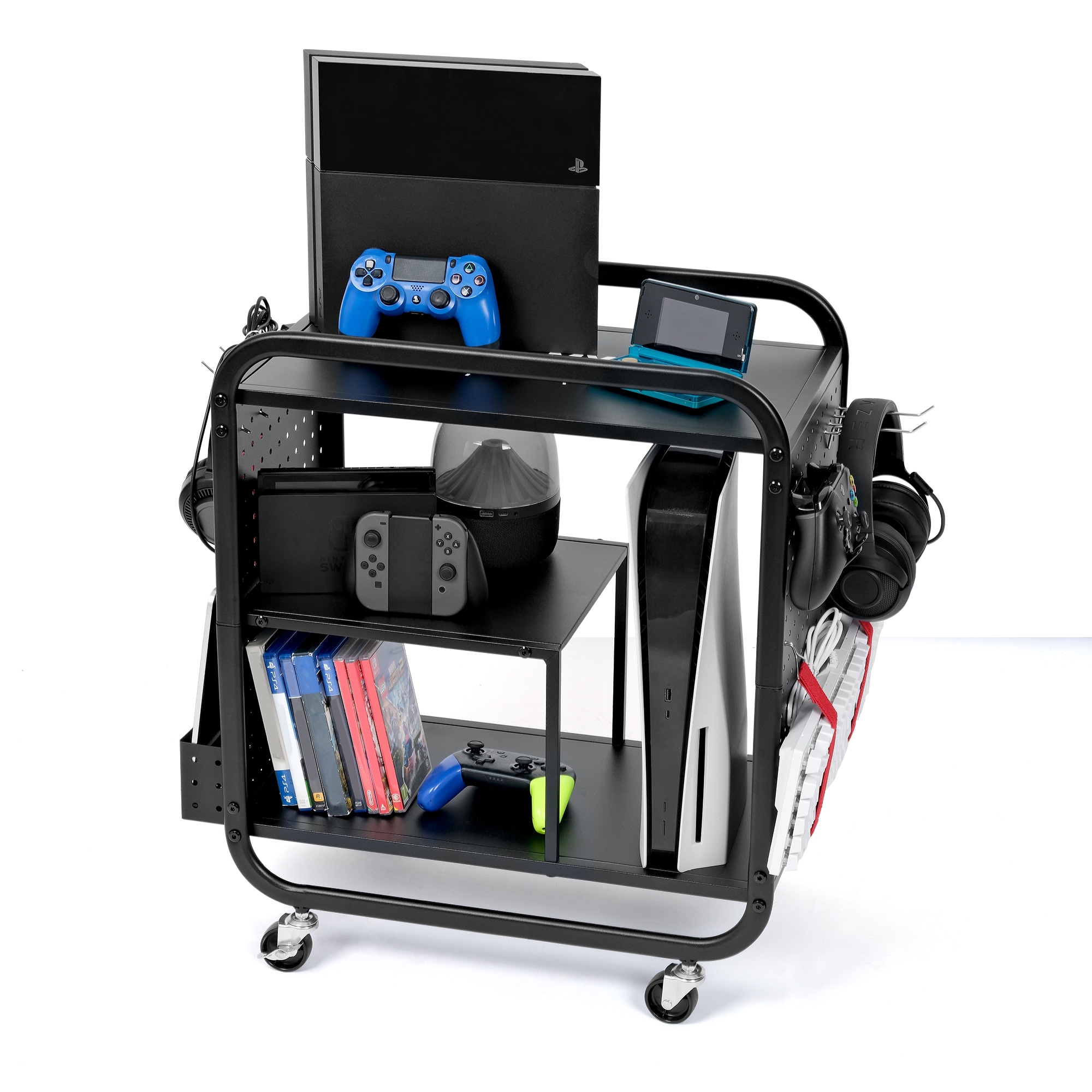 Gaming Organizer Cart with Multi-Level Storage and Wheels
