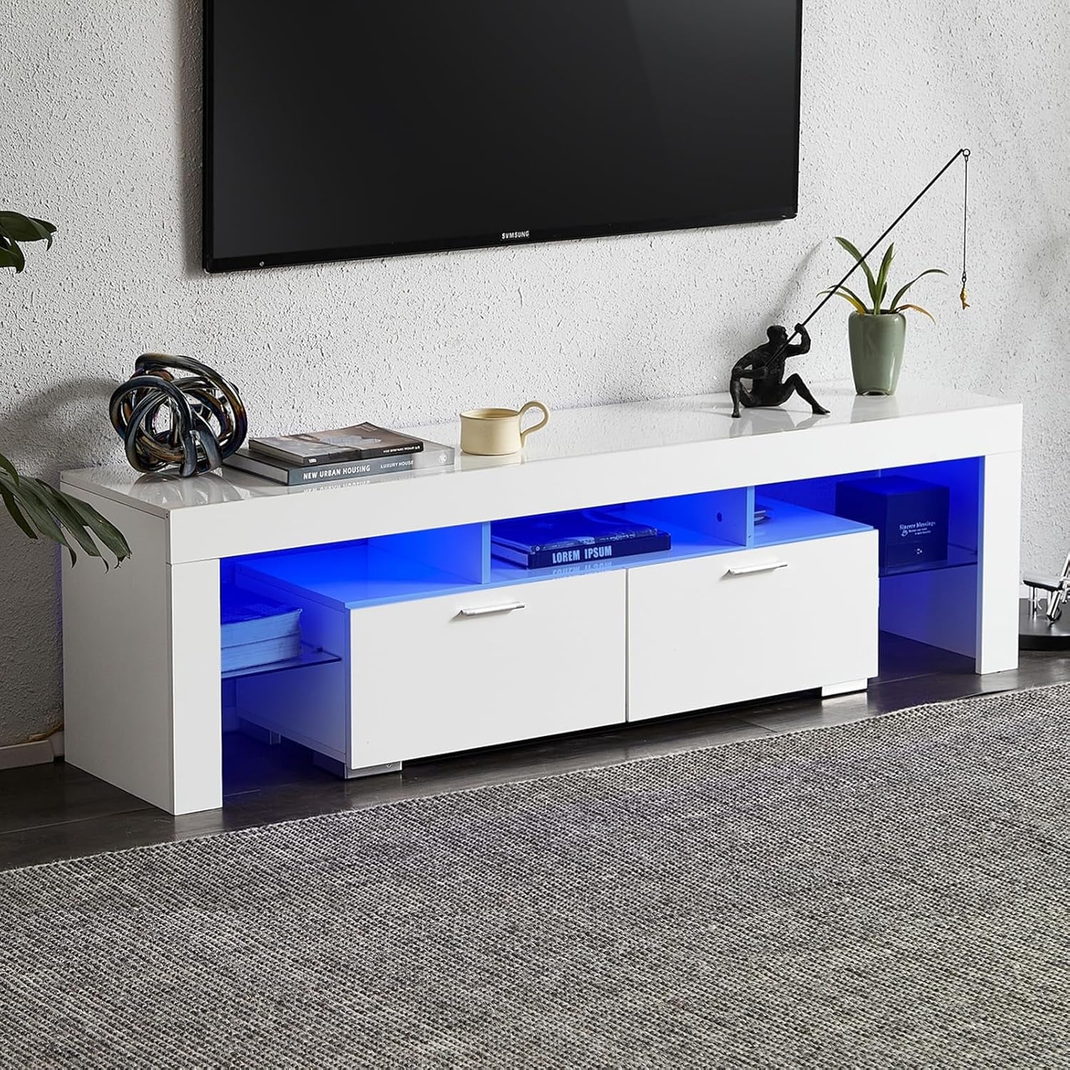 TV Stand 60-75 inch, Modern Living Room Console with 2 Drawers, Wooden Cabinet with Storage