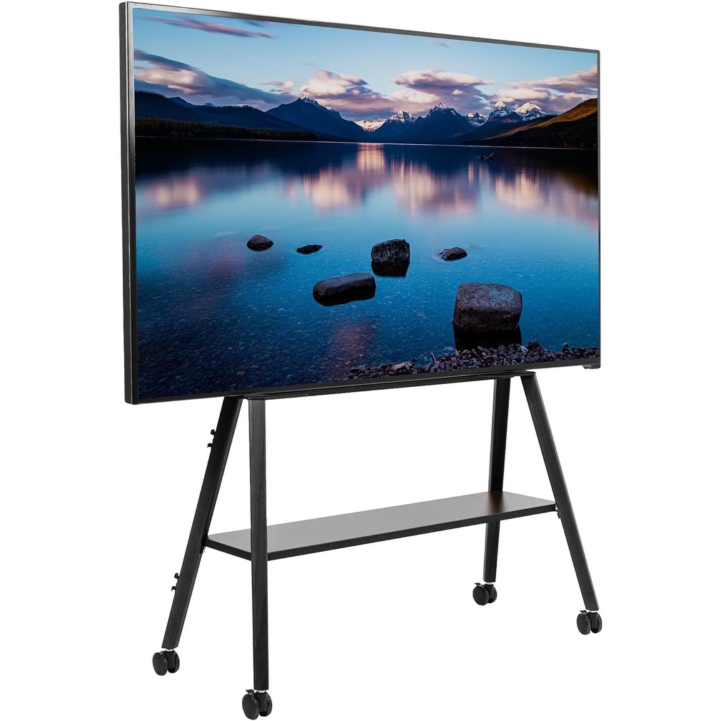 Artistic Easel 43-75 inch LED/LCD Mobile Stand, Adjustable TV Mount with Wood Shelf, Black