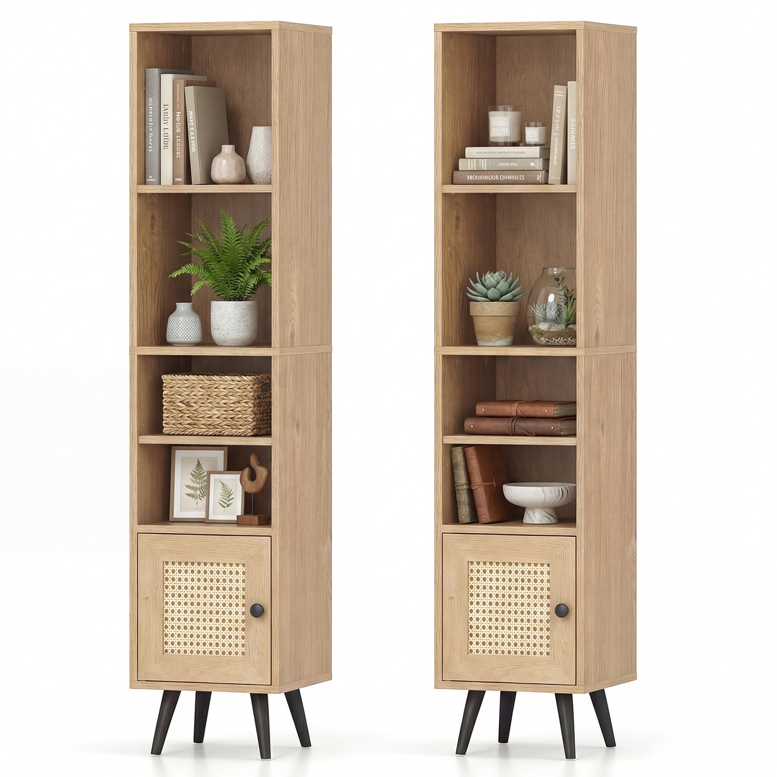 Gymax 2PCS 6-Tier Tall Narrow Bookcase w/Adjustable Shelf & Boho Style