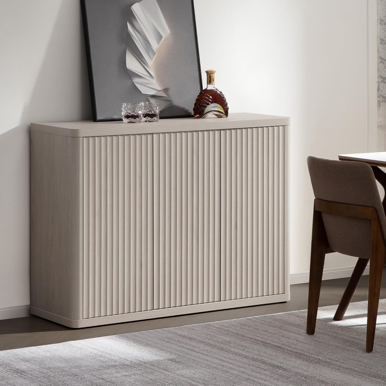 71"H Display Cabinet, 2 Drawers, Upholstered Pantry, Wine Cabinet, Glass Door, LED