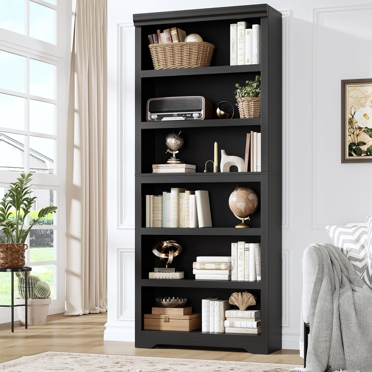 Farmhouse Bookcase with Adjustable Shelves, Floor Standing Open Display Storage Rack, Anti-Slip Design