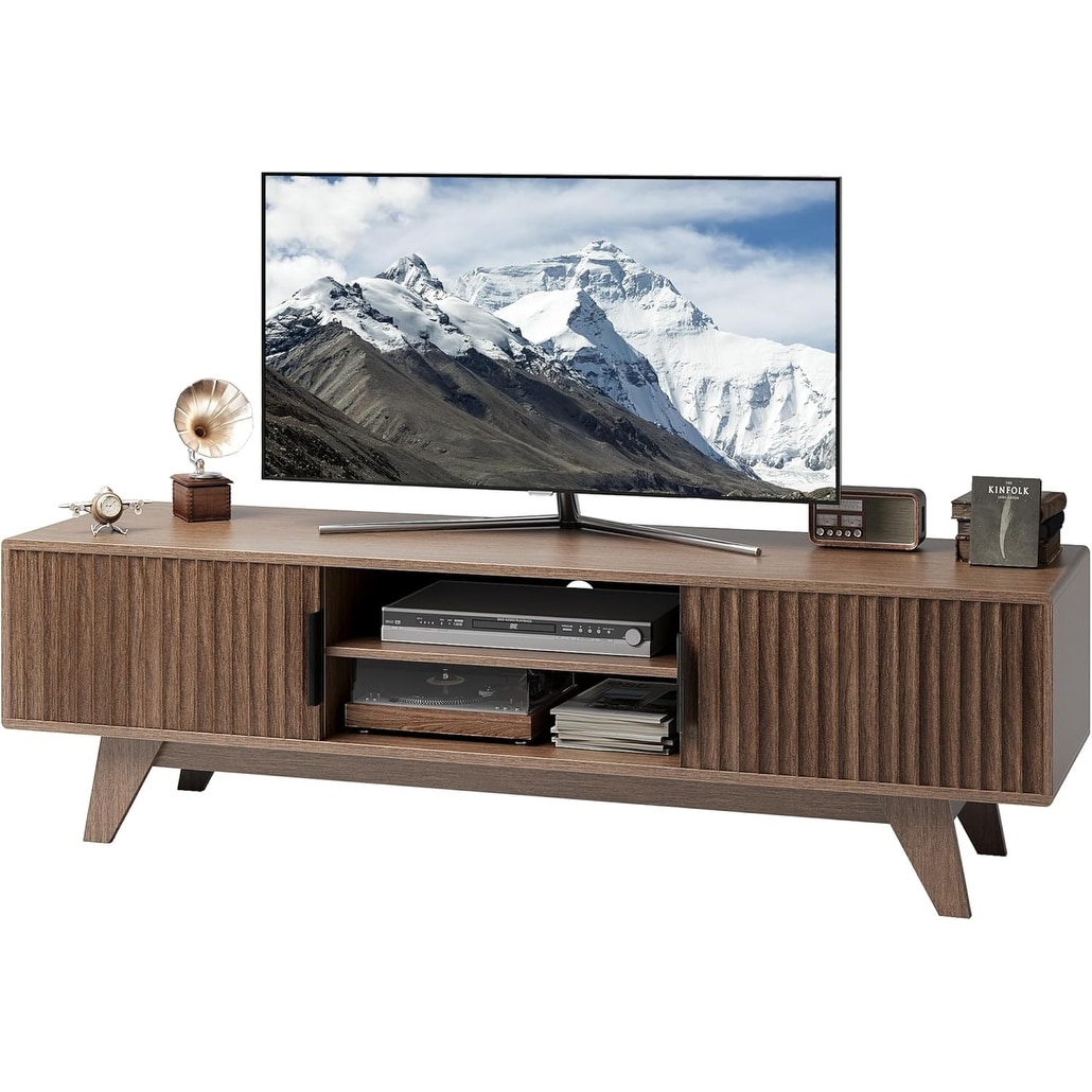 Mid-Century TV Stand for 65" with Storage, Fluted Wood Design, Adjustable Shelves, Low Profile Console