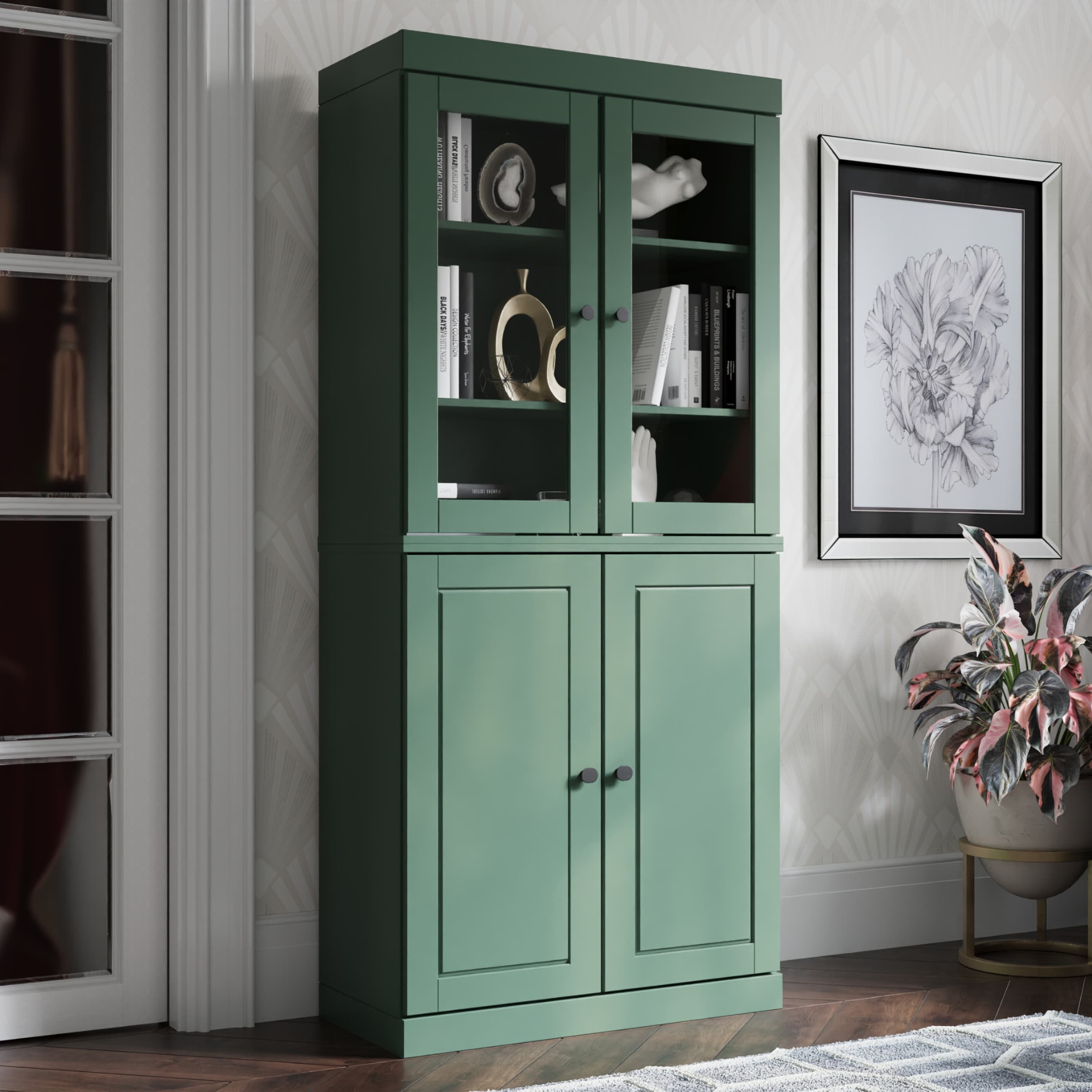 Palace Imports Solid Wood 6-Shelf Bookcase, Raised Panel Clear Glass Doors, Adjustable Shelves