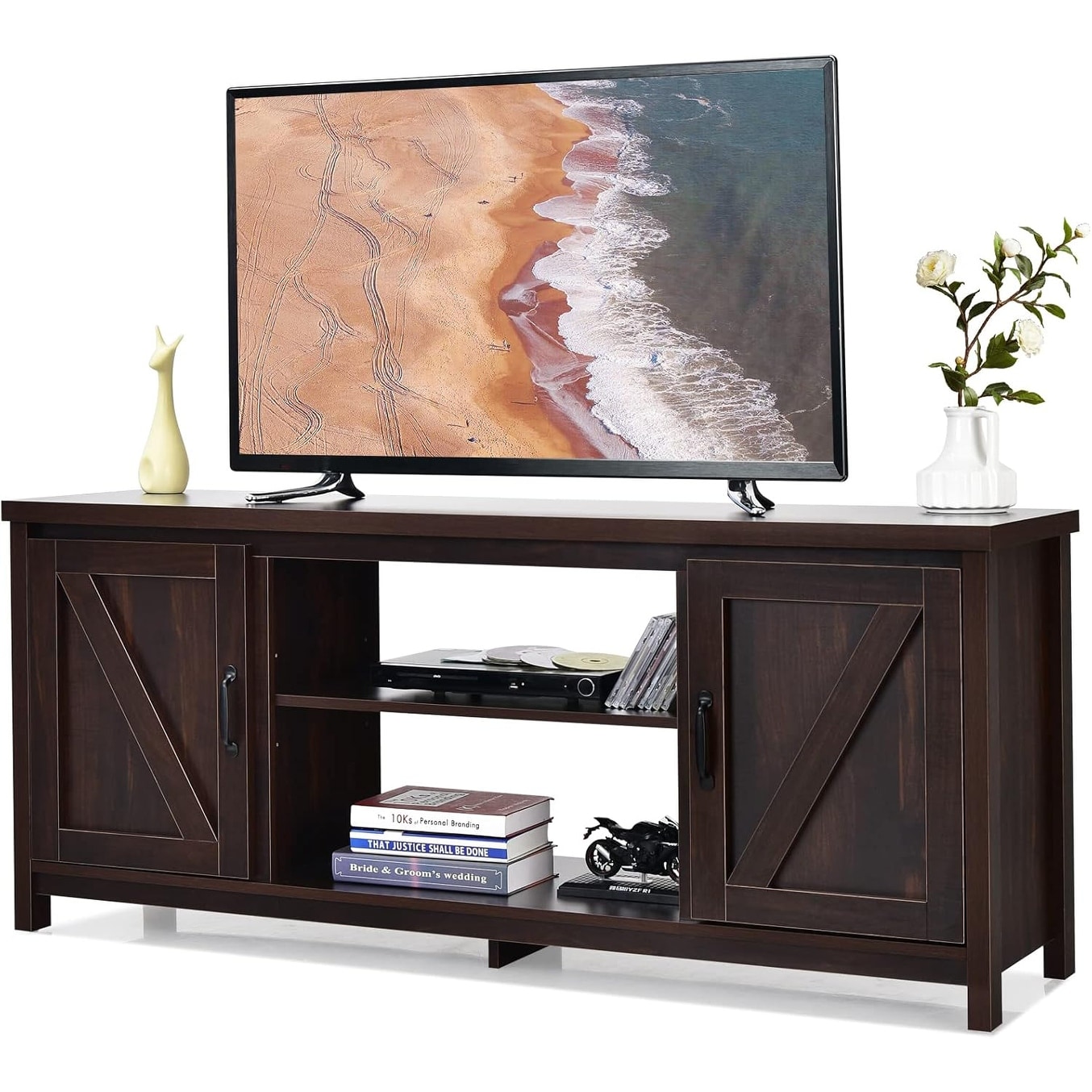 TV Stand with 2 Cabinets & Adjustable Shelves, Wooden Console for TVs up to 65"