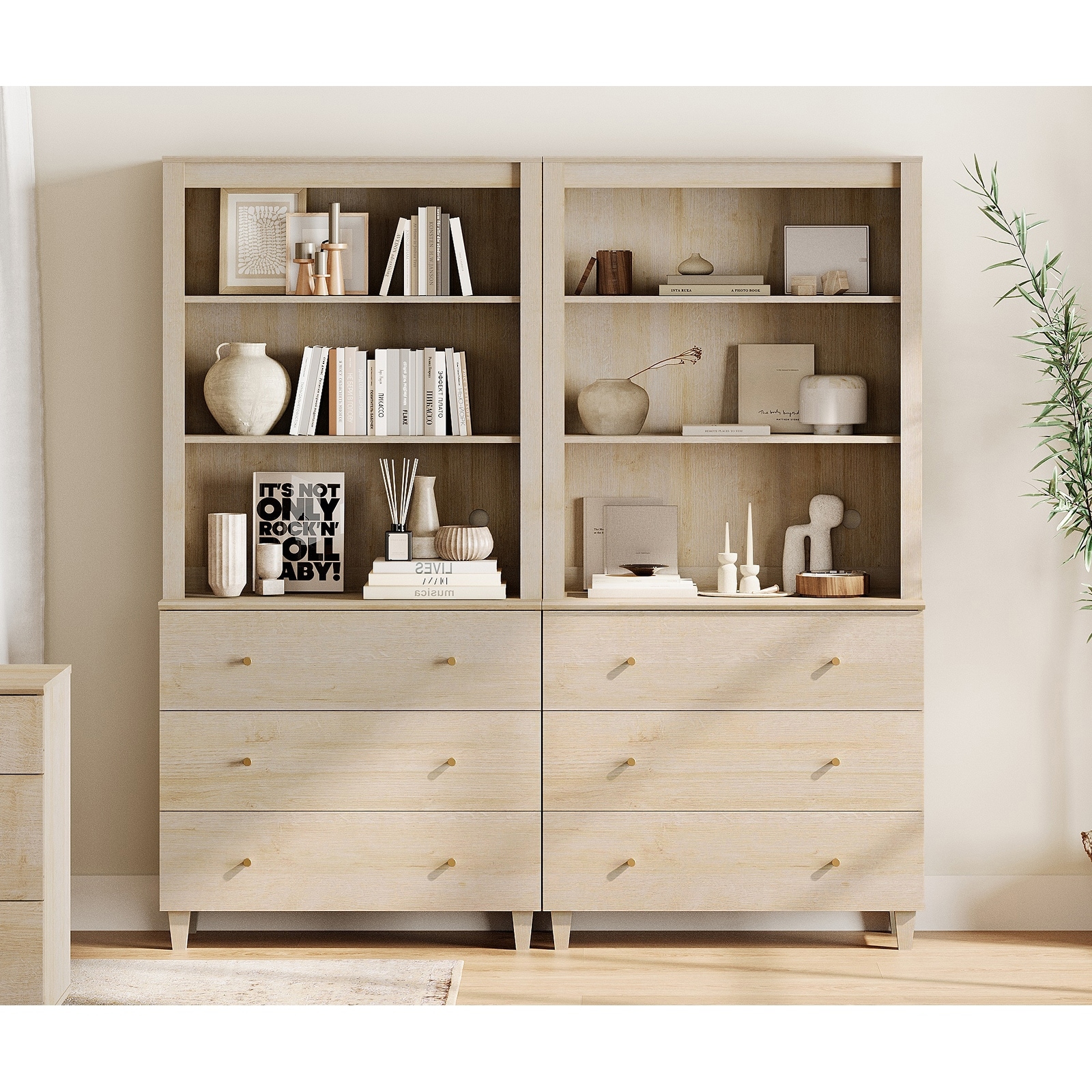 WAMPAT 3-Piece Modern 72" Tall Bookcase with 6 Drawers and Adjustable Shelves