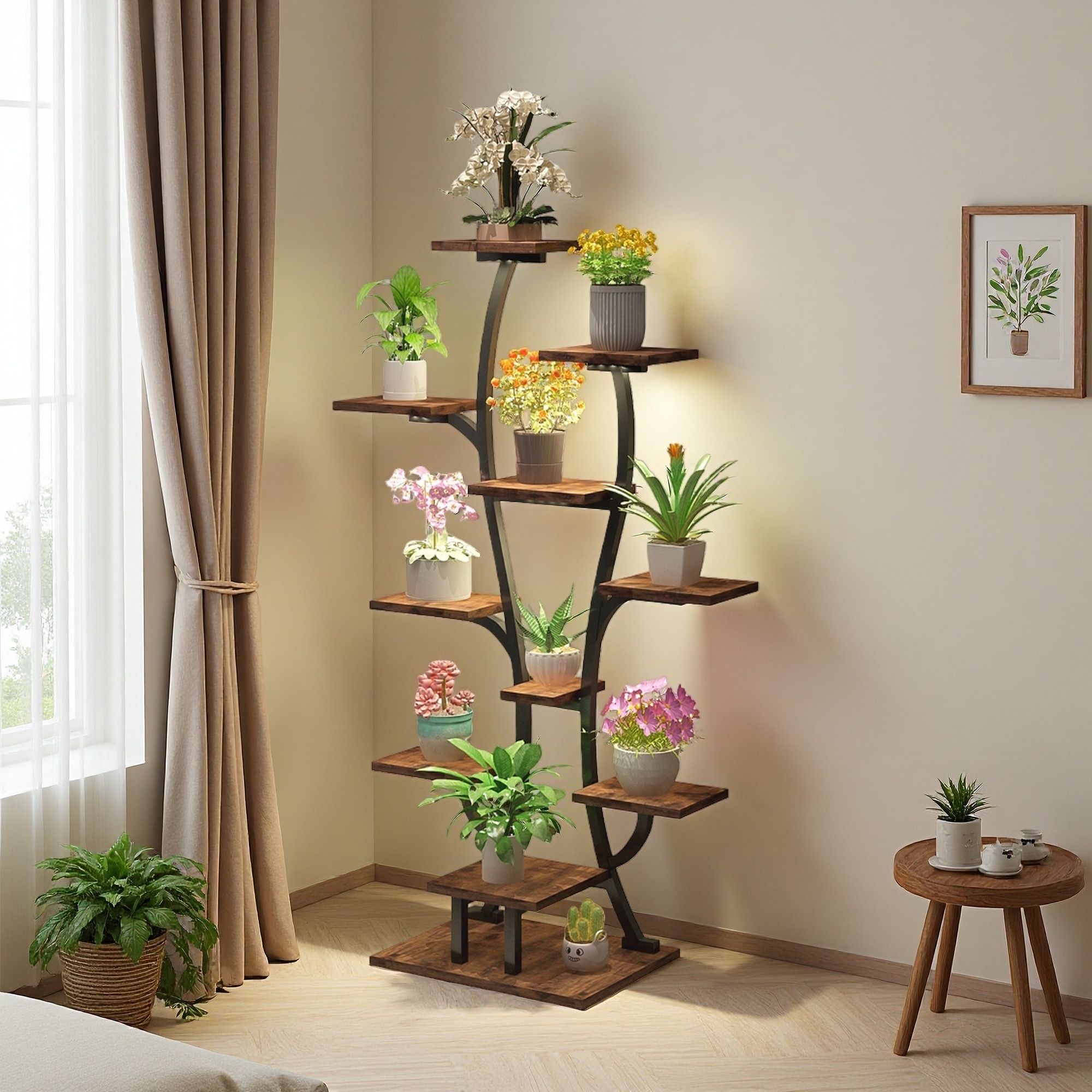 64.57"H Vase-Shaped Metal Plant Stand, Adjustable LED Grow Lights, Indoor Shelf