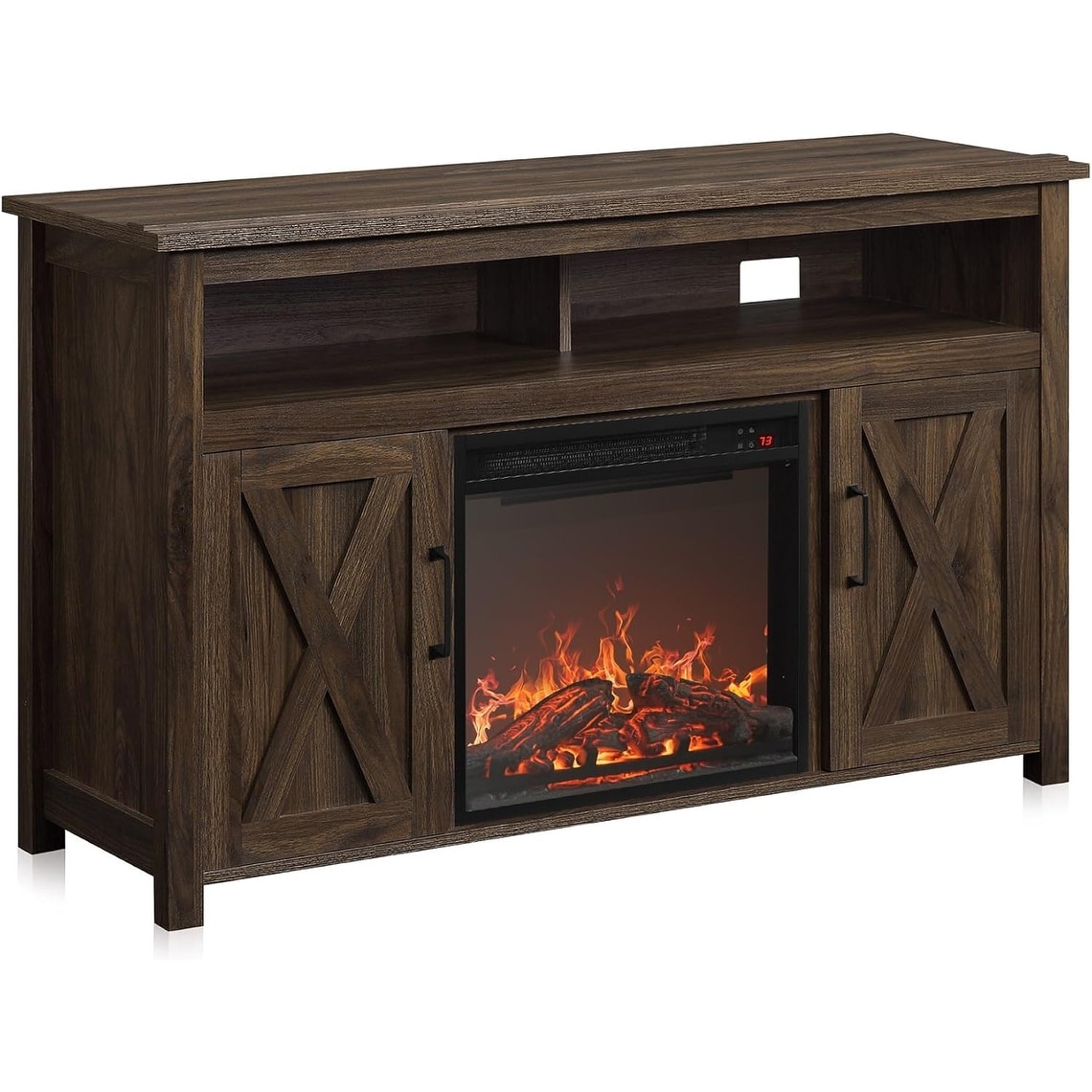 48" Wood TV Stand with Electric Fireplace & Media Console for TVs up to 50" - Dark Walnut