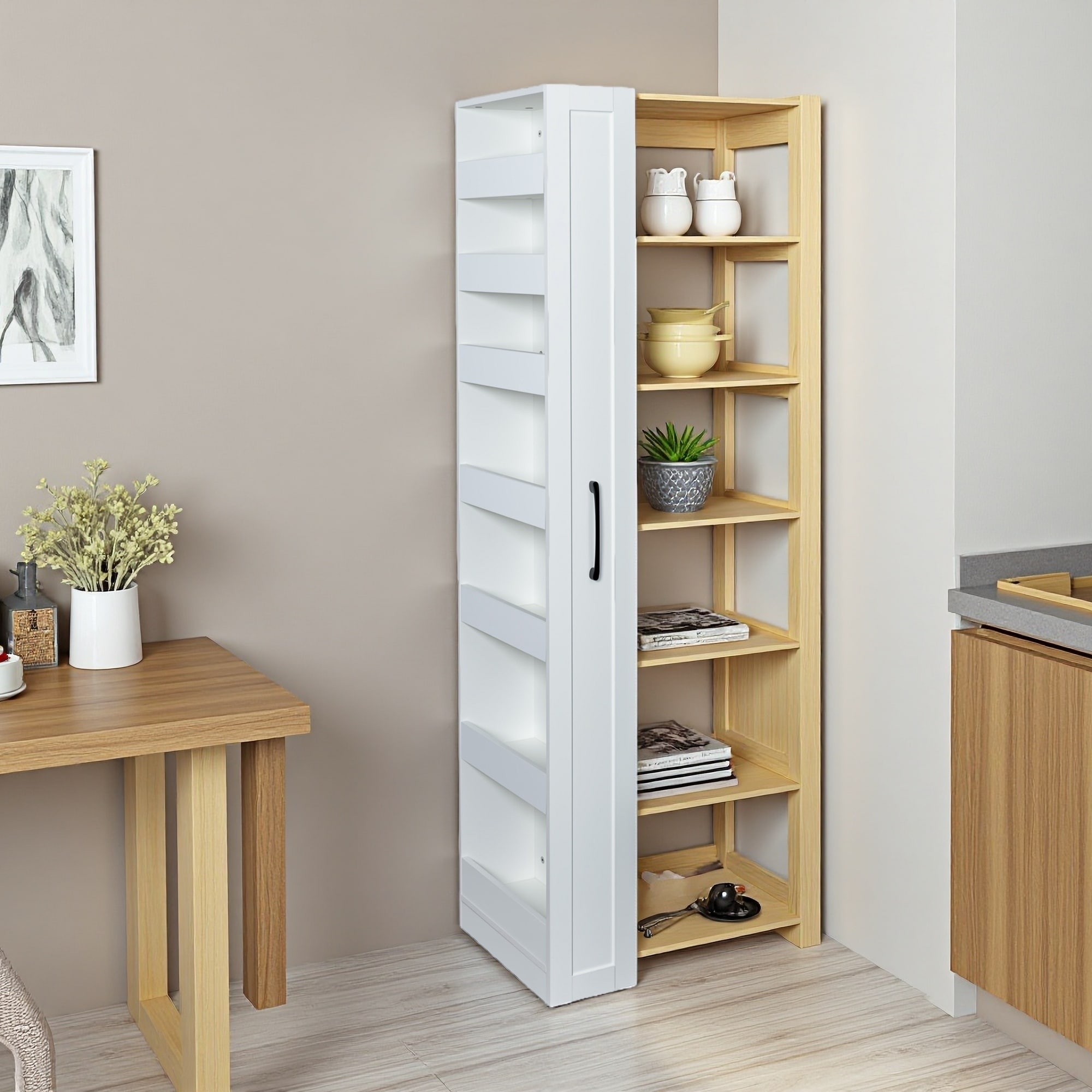 70.75"H 7-Tier Pull-Out Wooden Storage Shelf, Slim Design for Kitchen & Living Room, Narrow Storage Rack for Tight Spaces