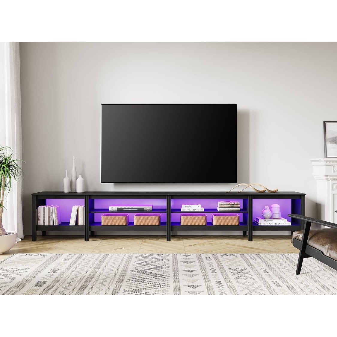 TV Stand for 100 Inch with LED Lights, Black Entertainment Center with 6 Cubby Storage for Living Room Bedroom