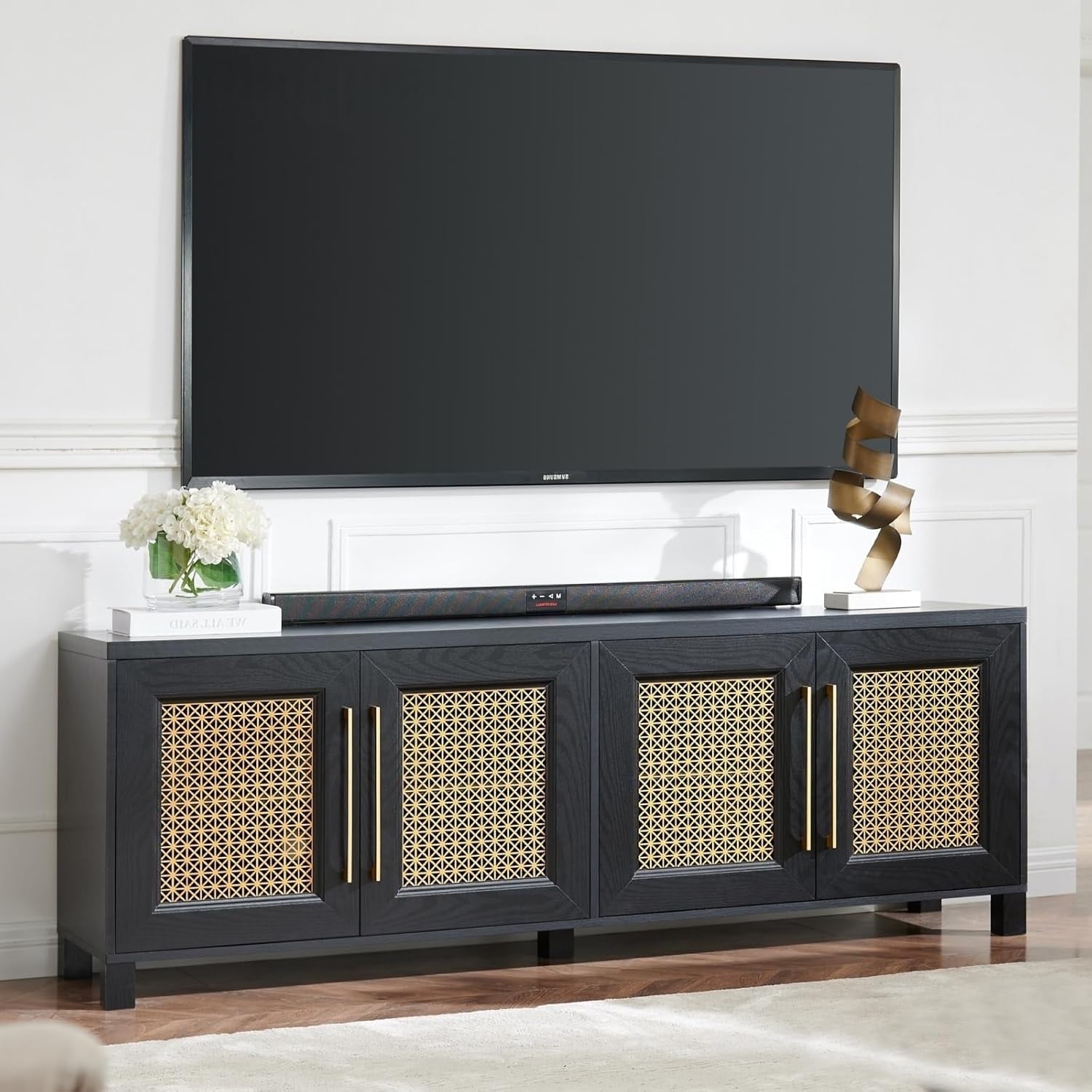 Modern Luxe 70 Inch TV Console with Geometric Metal Doors & 4-Door Storage