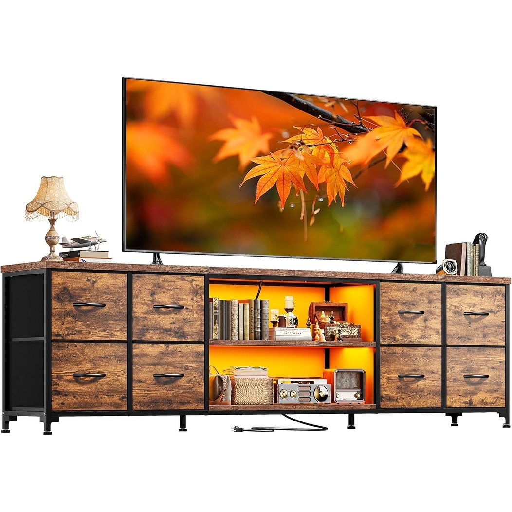 63" TV Stand for 65-75 Inch with Lights, Power Outlets & Storage Drawers, Rustic Brown