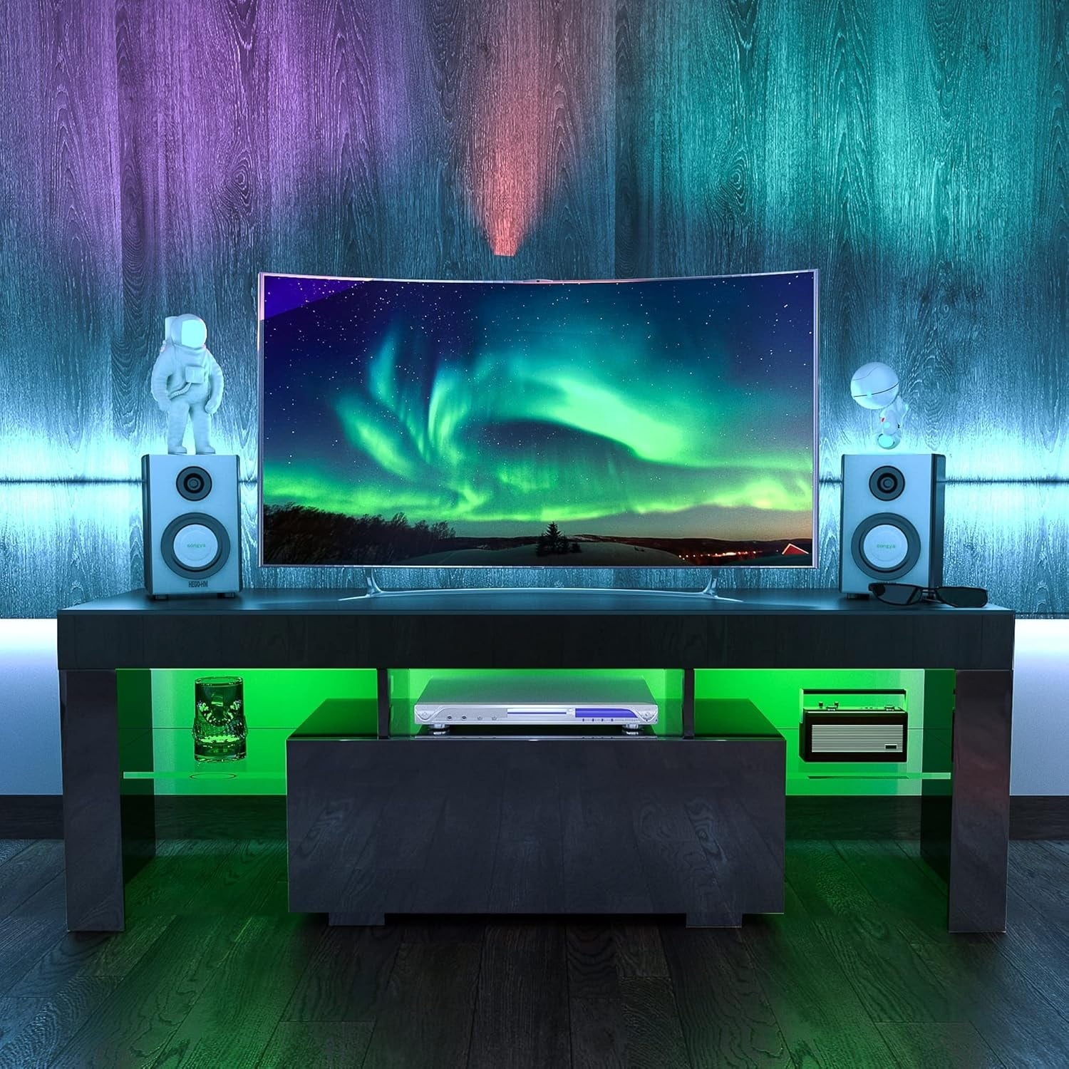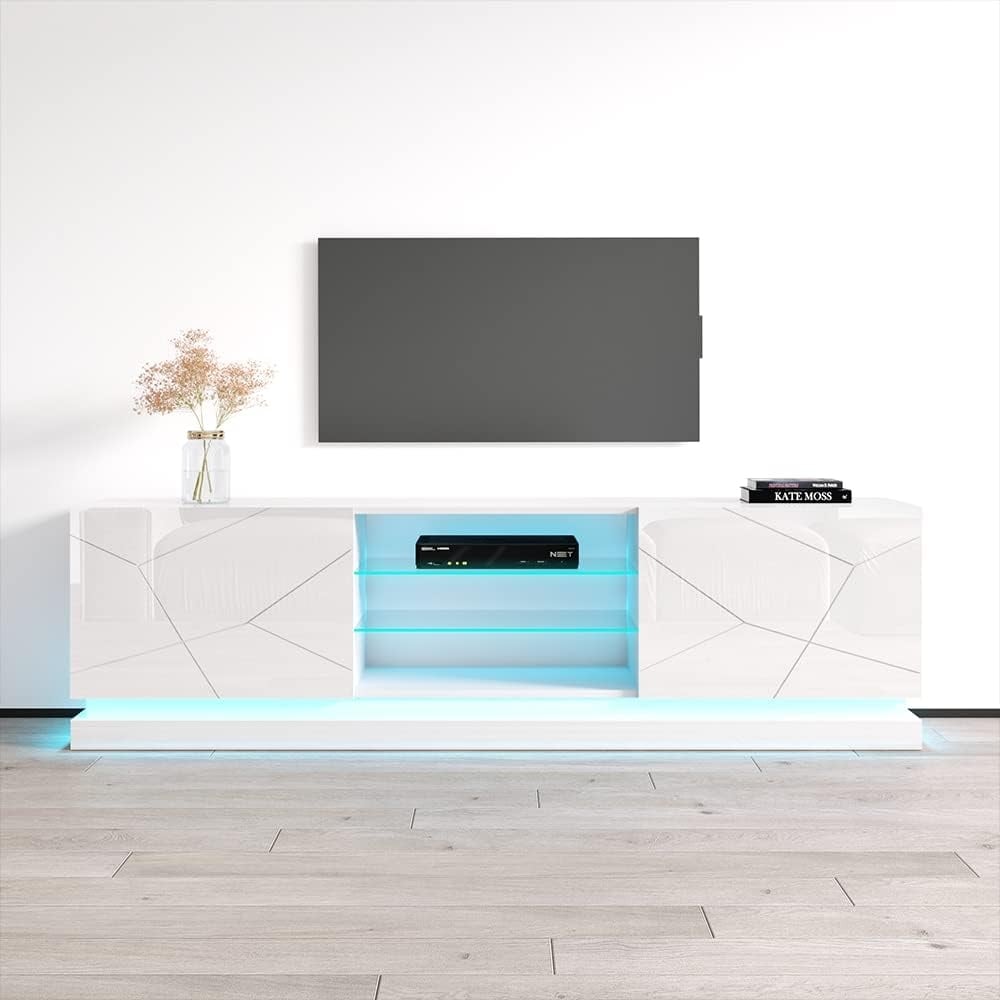 Modern TV Stand with Large Storage, High Glossy Finish, Fits 55/60 Inch, Living Room Bedroom Media Console
